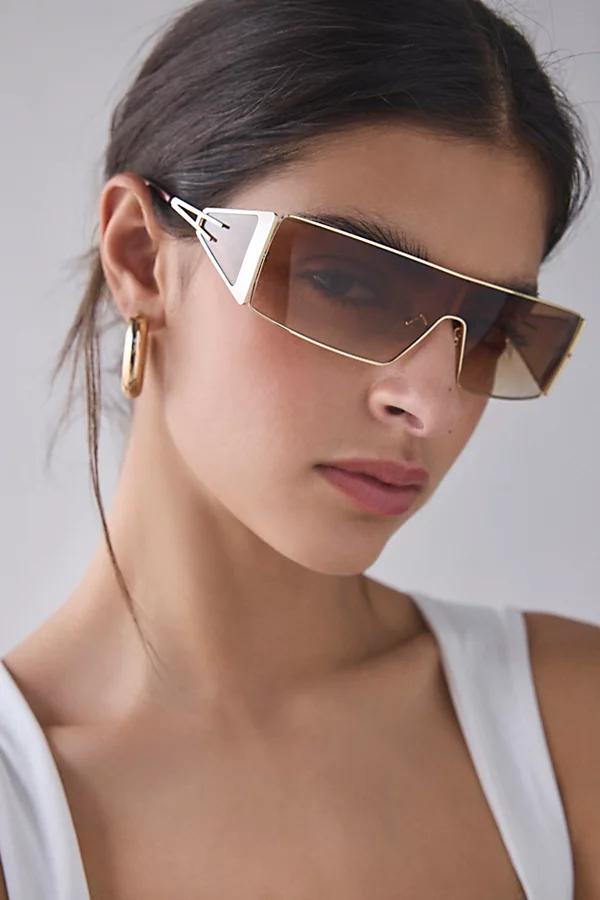 Fifth & Ninth Paloma shield sunglasses with strong Y2K vibes. Oversized sunglasses style with flat-top metal frames and adjustable nose pads. Features Fifth & Ninth Paloma shield sunglasses Oversized sunglasses in a Y2K aesthetic Sleek metal frames Flat-top sunglasses style Complete with 100% UV protection Includes travel case Content + Care Mixed metal, plastic Wipe clean Imported Size Dimensions: Lens 65mm / Bridge 18mm / Temple 138mm Fifth & Ninth Paloma Oversized Shield Sunglasses in Brown, Womens at Urban Outfitters