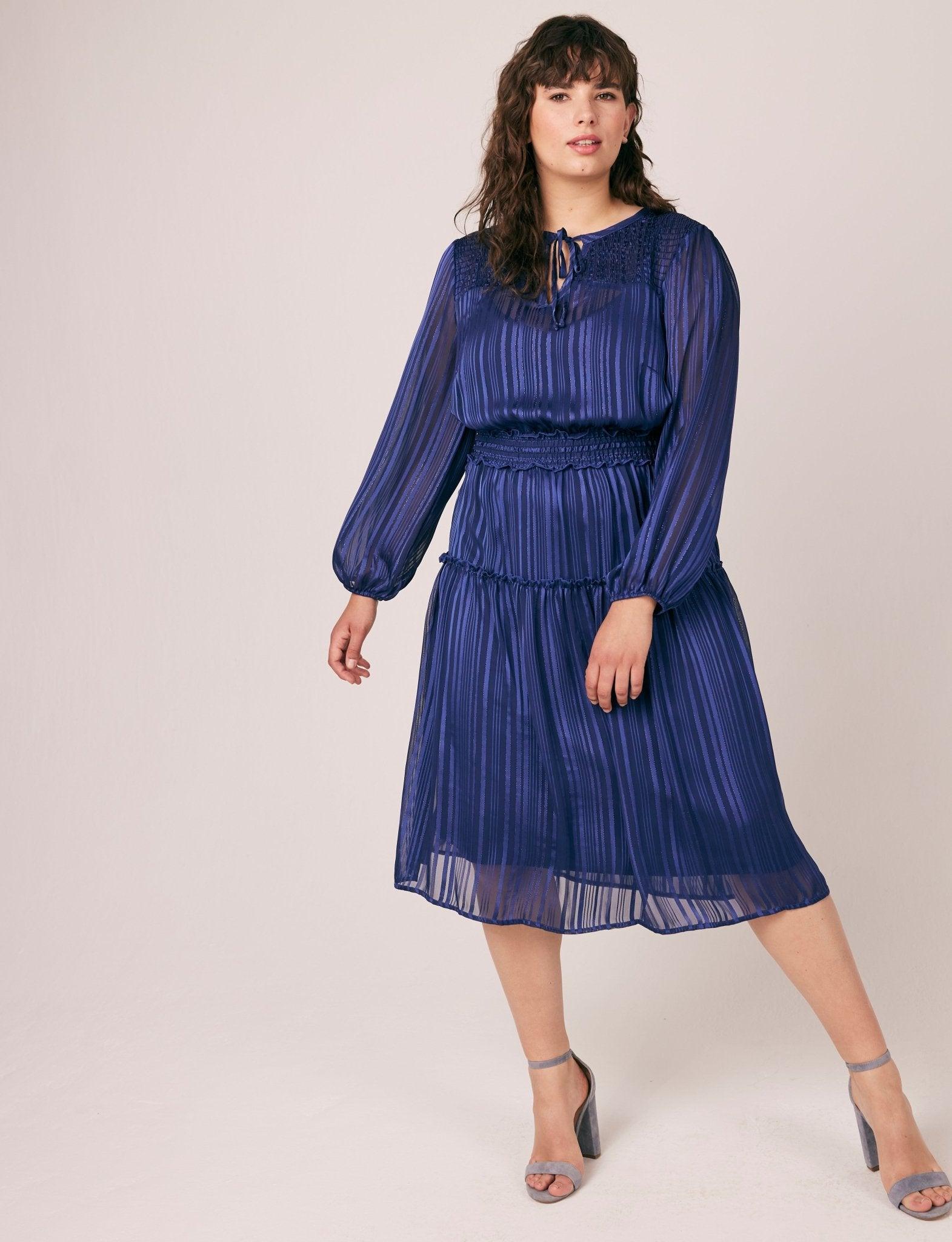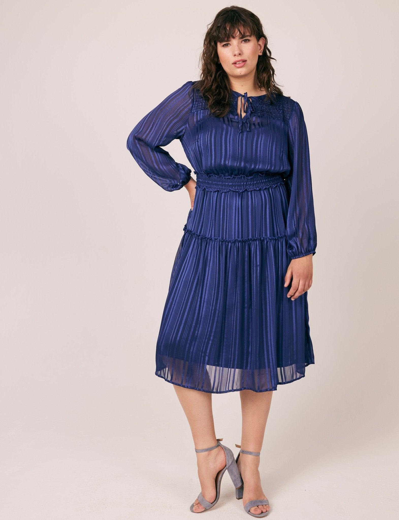 Figueroa & Flower Satin Stripe Midi Dress - Plus