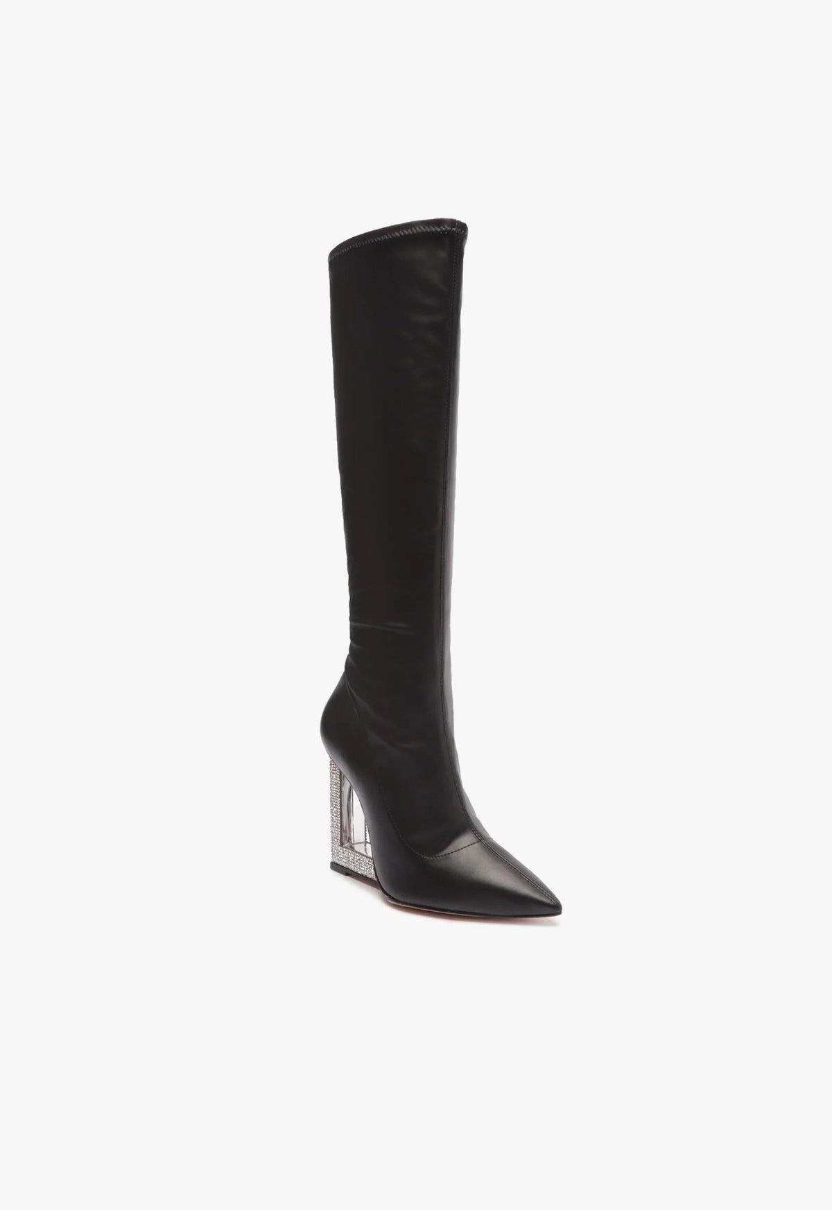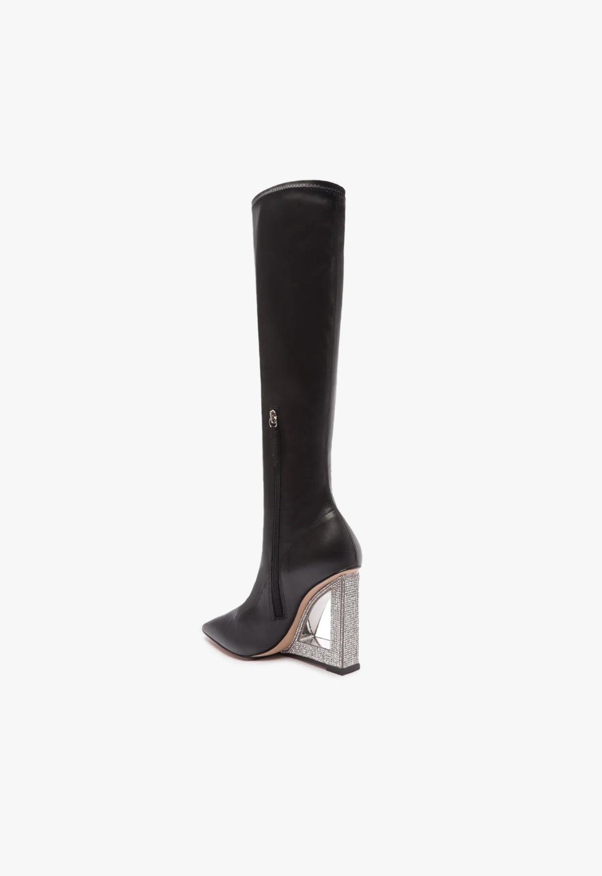 Featuring a knee-high long boot design, a geometric heel, and pointed toe, these statement-making boots will make your mini skirts and cropped top outfits stand out!Materials: Synthetic Upper | Leather OutsoleUpper Format: Regular Shaped UpperHeel Type: High HeelHeel Type: SculpturalHeel Height: 4,3in | 110mmToe Style: Pointed ToeClosure Type: Zip ClosureCounter Type: ClosedSKU: S2159600080001