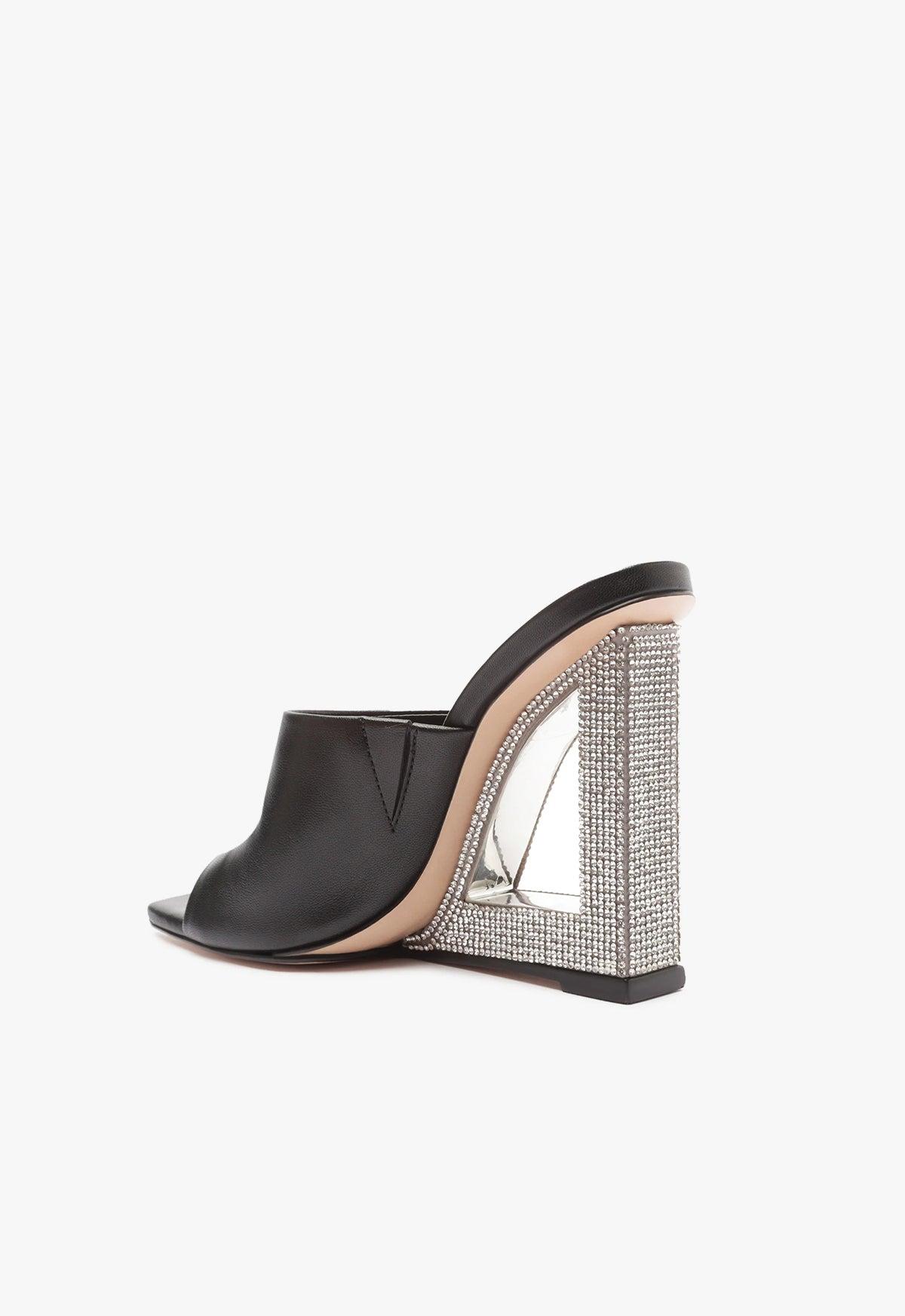 Crafted of leather, Schutzs Filipa Mules are designed with an open toe and a crystal-embellished, sculptural wedge heel. Open toe Slips on Leather upper Synthetic lining Leather sole Imported SIZE Sculptural wedge heel: about 4 (100mm). Womens Shoes - Contemporary Shoes > Schutz > Saks Fifth Avenue > Barneys. Schutz. Color: Black. Size: 7.