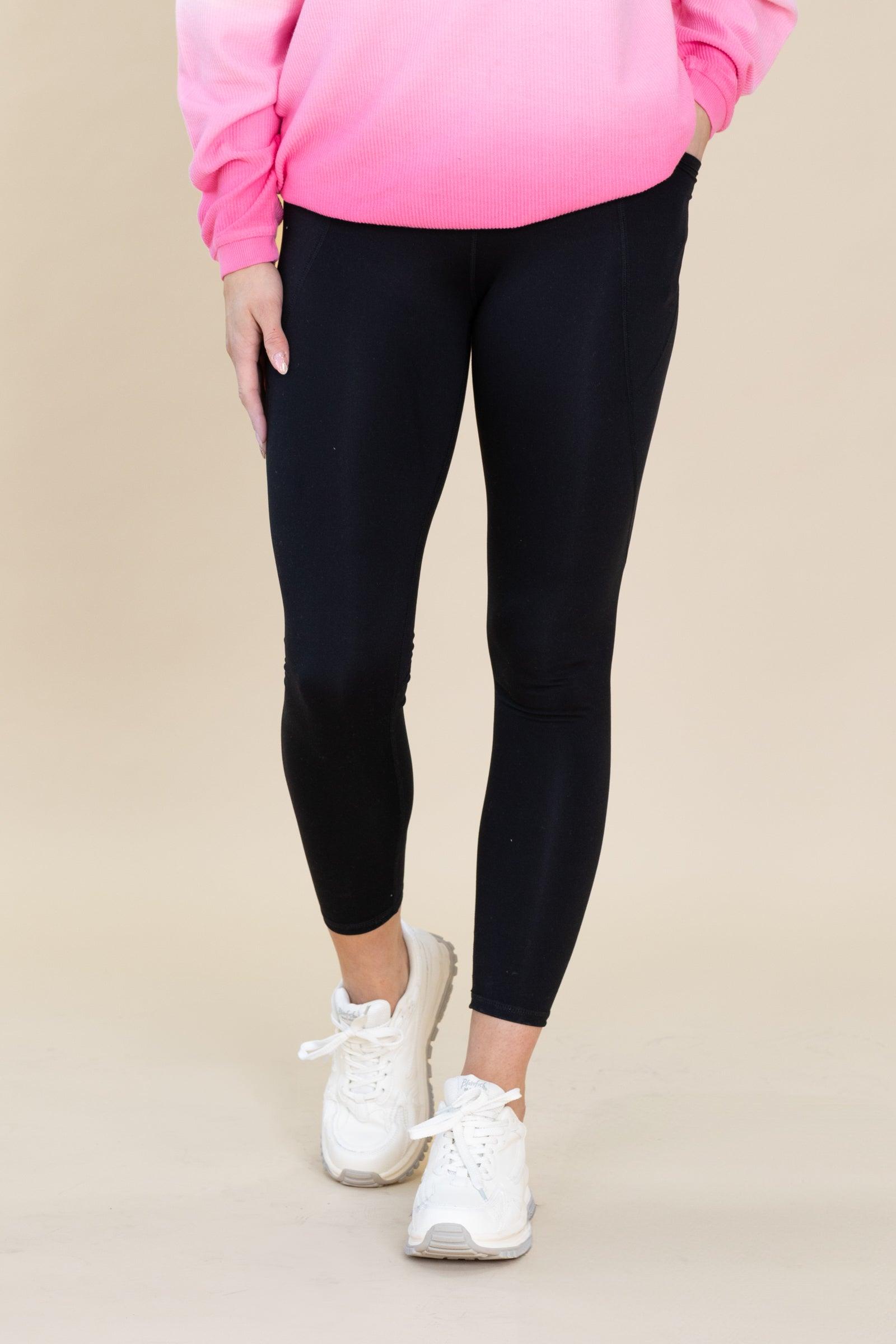 Product Details Colors: Black Print: Solid Style: Leggings Brand: Filly Flair Material and Care 76% Polyester 24% Spandex Machine Wash Cold Tumble Dry Low Size and Fit Inseam: 26" and 28" Options Small: Waist 22" Rise 9.5" Medium: Waist 24" Rise 9.5" Large: Waist 26" Rise 9.5" X Large: Waist 28" Rise 9.5" 2X Large: Waist 30" Rise 9.5" Model is 5'8 and is wearing a size small