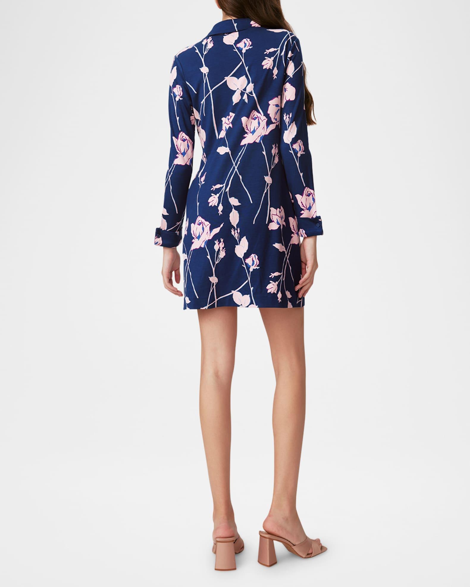 Diane von Furstenberg "Alarica" soft jersey shirtdress featured in Final Act floral print Spread collar; partial button front Long sleeves; folded button cuffs Side seam pockets Hem falls above the knee Body-skimming silhouette Slipover style Viscose/nylon/polyamide/spandex Dry clean Imported Model is 5'10"/177cm.
