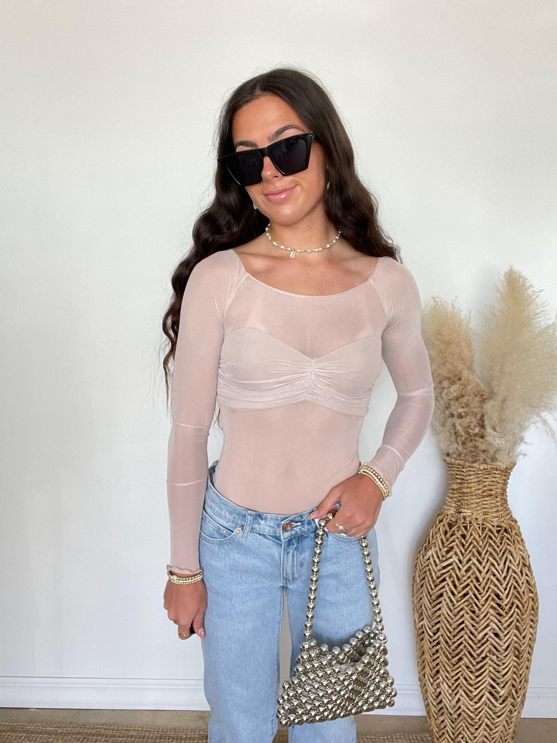 FINAL SALE Angelica Sheer Mesh Ruched Top | Beige