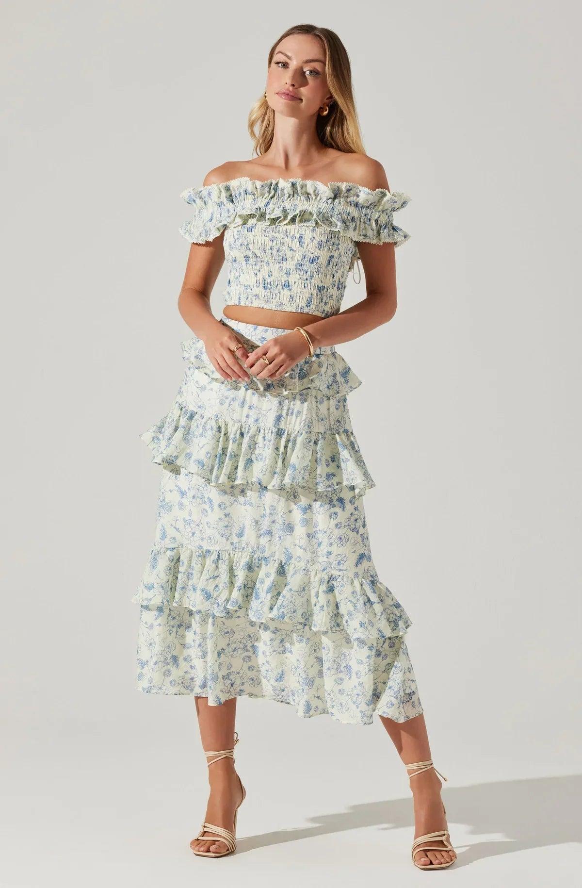 Ruffle, off-the-shoulder neckline