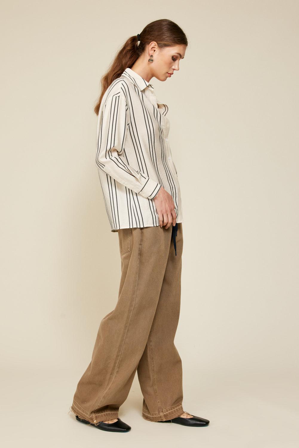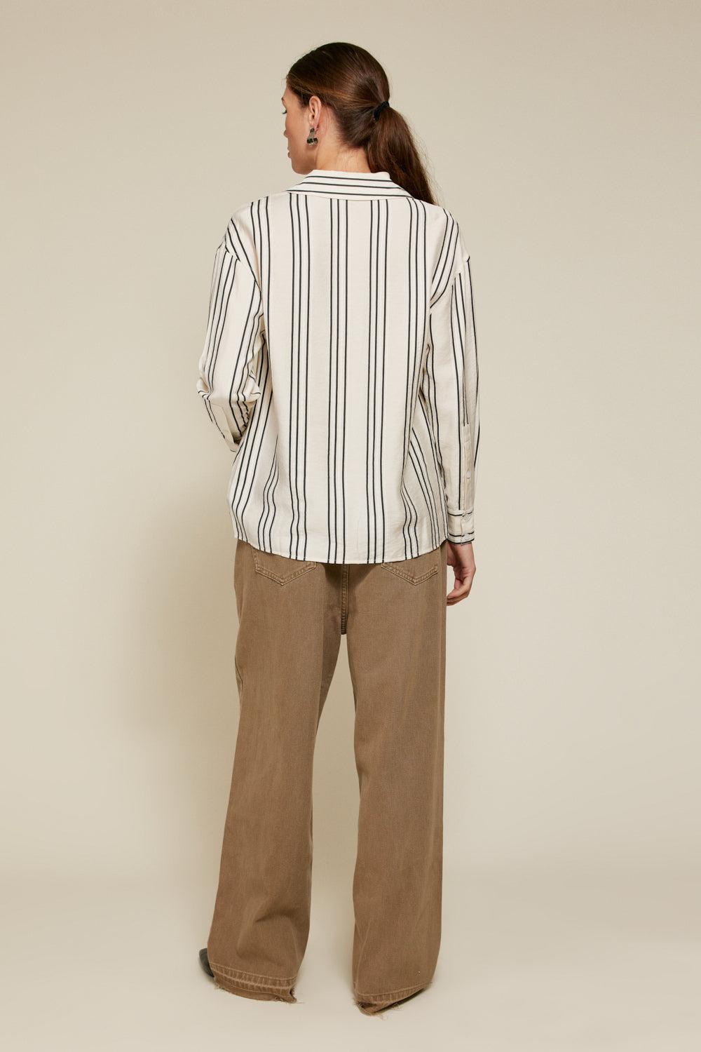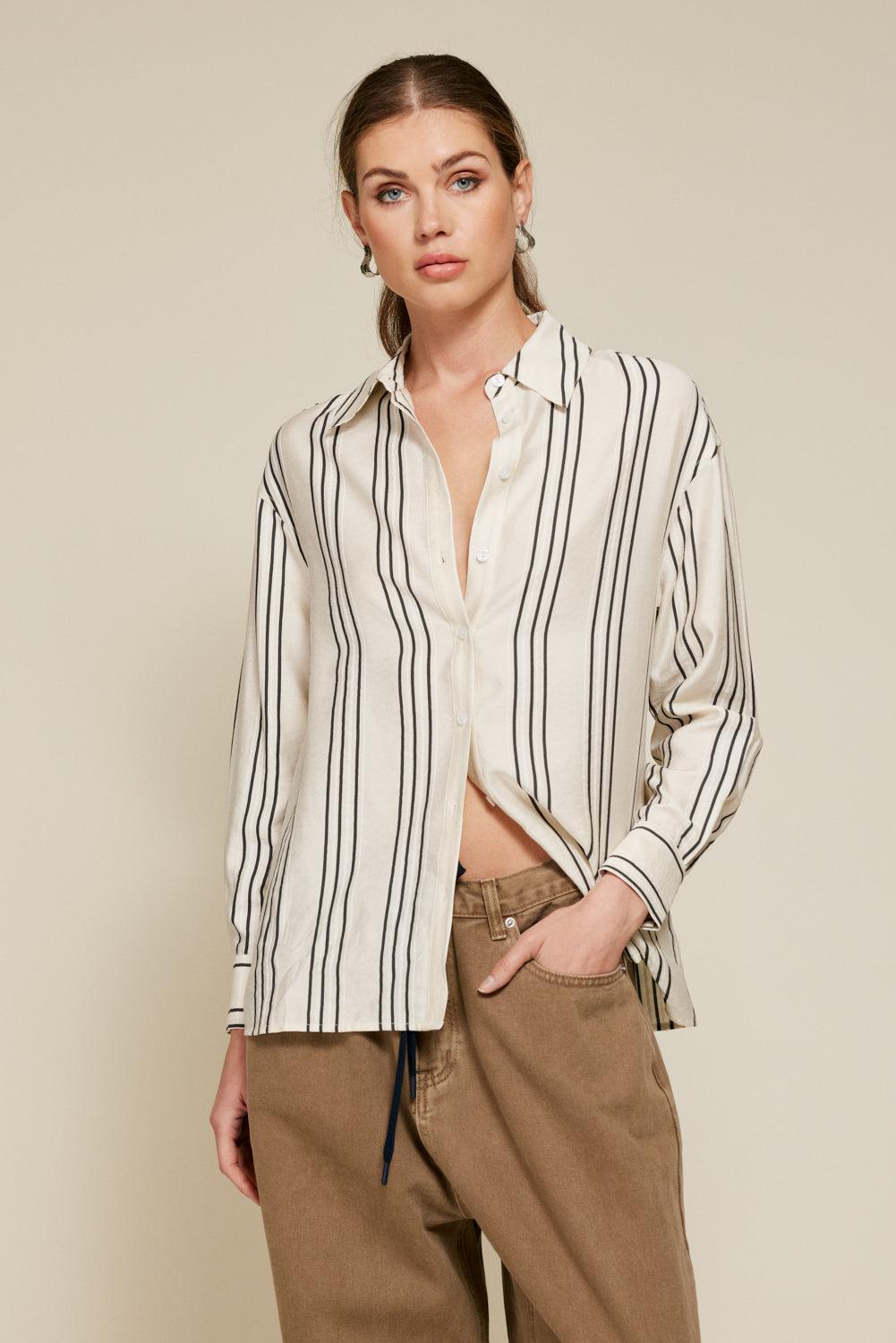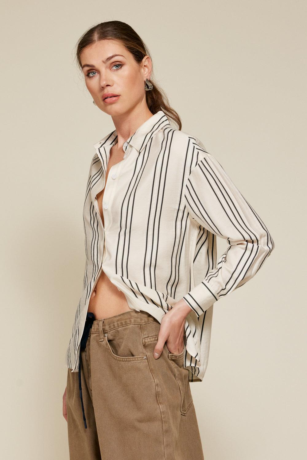 Experience the ultimate in effortless style with Line & Dot's Freddie Striped Top. This Shirt features a striped pattern, a button-down front, a flattering V-neckline, a chic lapel collar, and a comfortable fit.