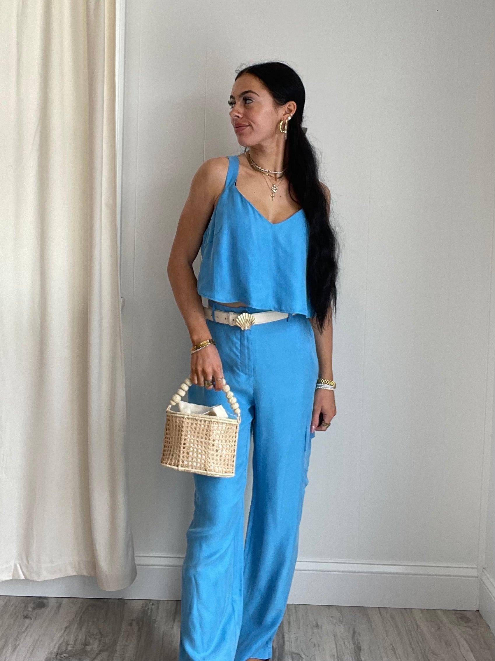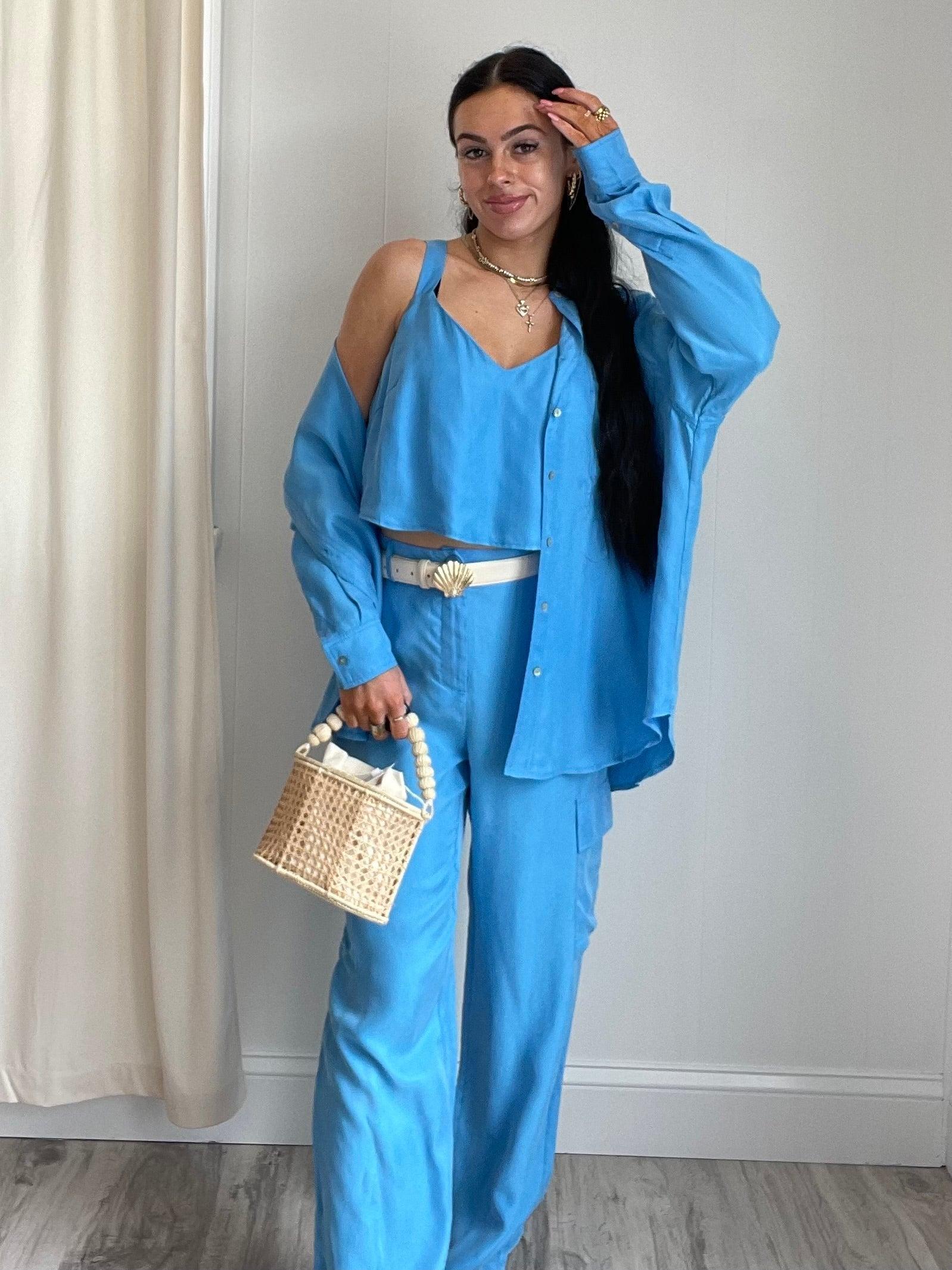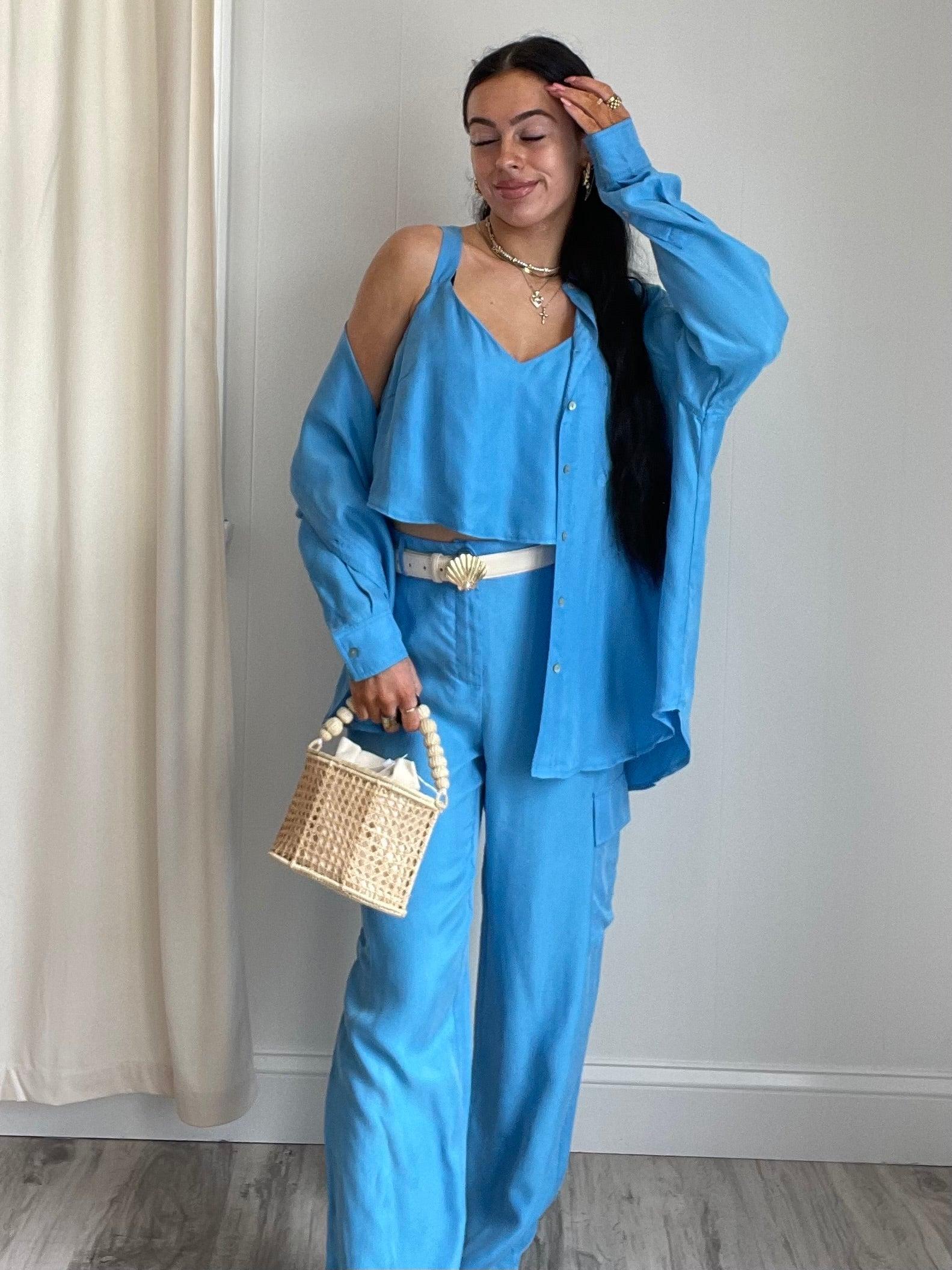 Introducing...Mella Wide Leg Cargo Pants in Blue! Get ready to conquer the world (or just your daily to-do list) in these stylish and comfortable pants. Light, airy, and perfect for any occasion, these pants will quickly become your go-to. So why wait? Add them to your cart now.
