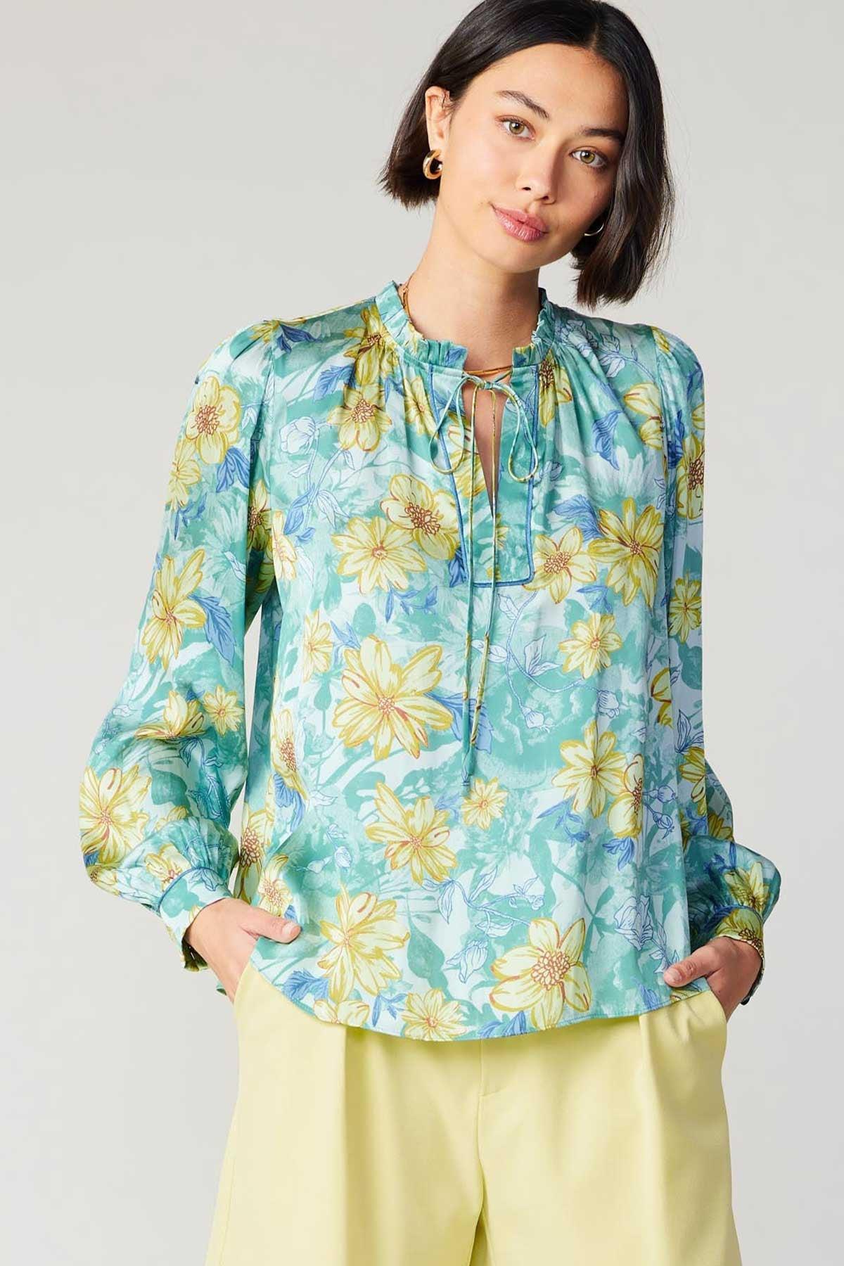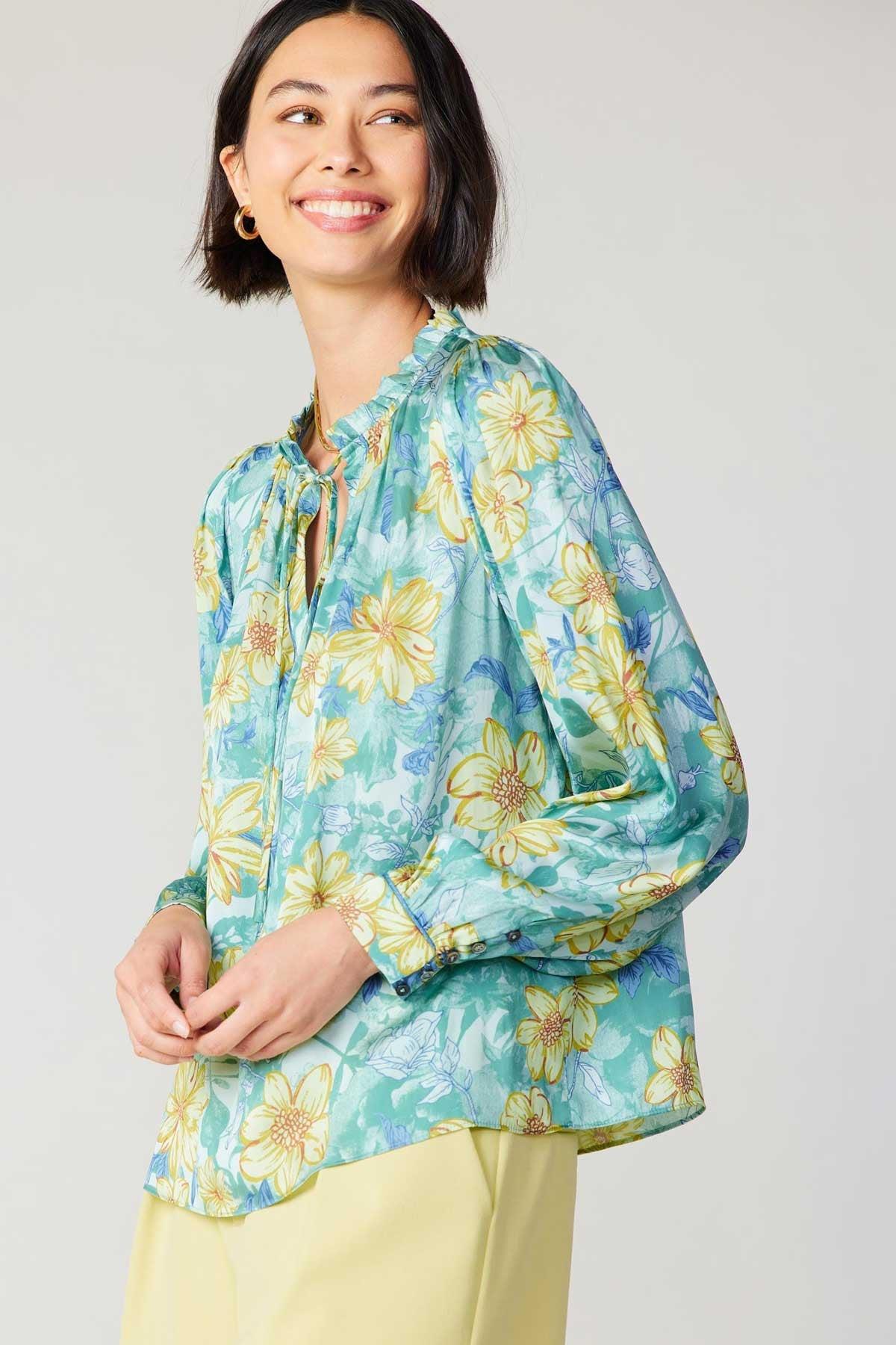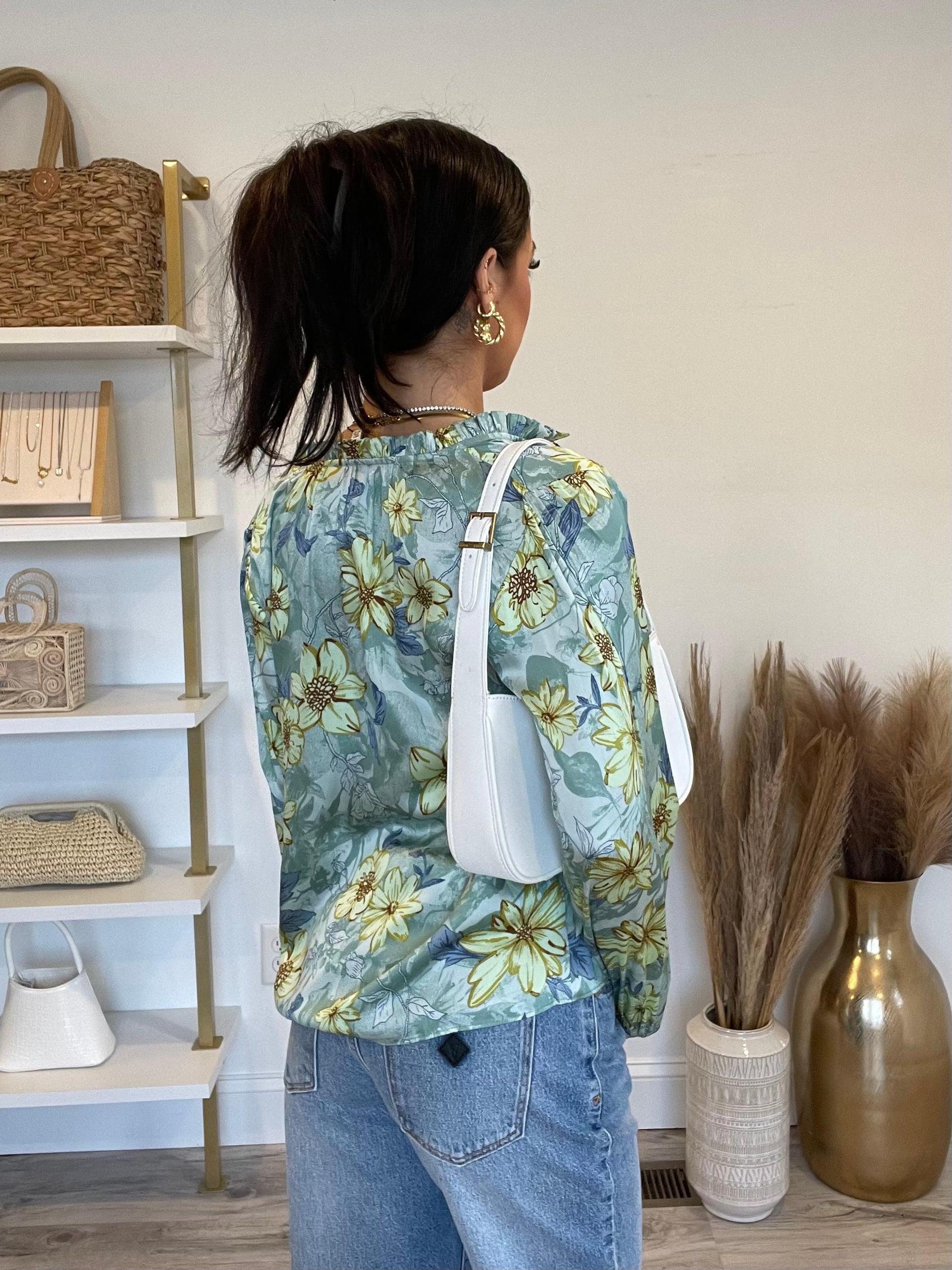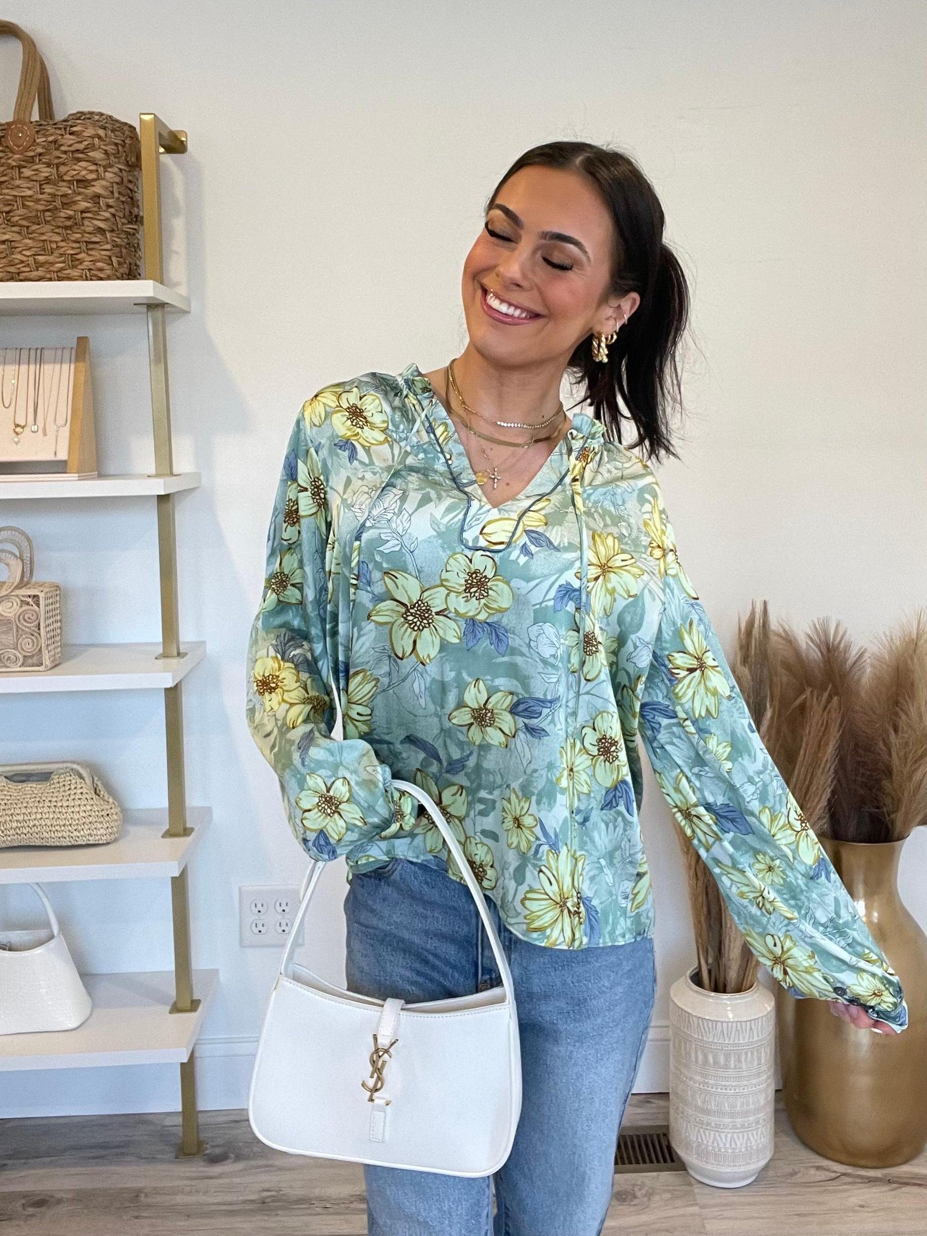 Experience the luxurious elegance of the Primavera Floral Puff Sleeve Top in stunning sage. Adorned with a delicate floral print and crafted from soft satin fabric, this top features charming puff sleeves, a flattering v-neckline, and an optional tie closure for a relaxed yet sophisticated fit. Embrace this exclusive piece and elevate your wardrobe with its refined style.