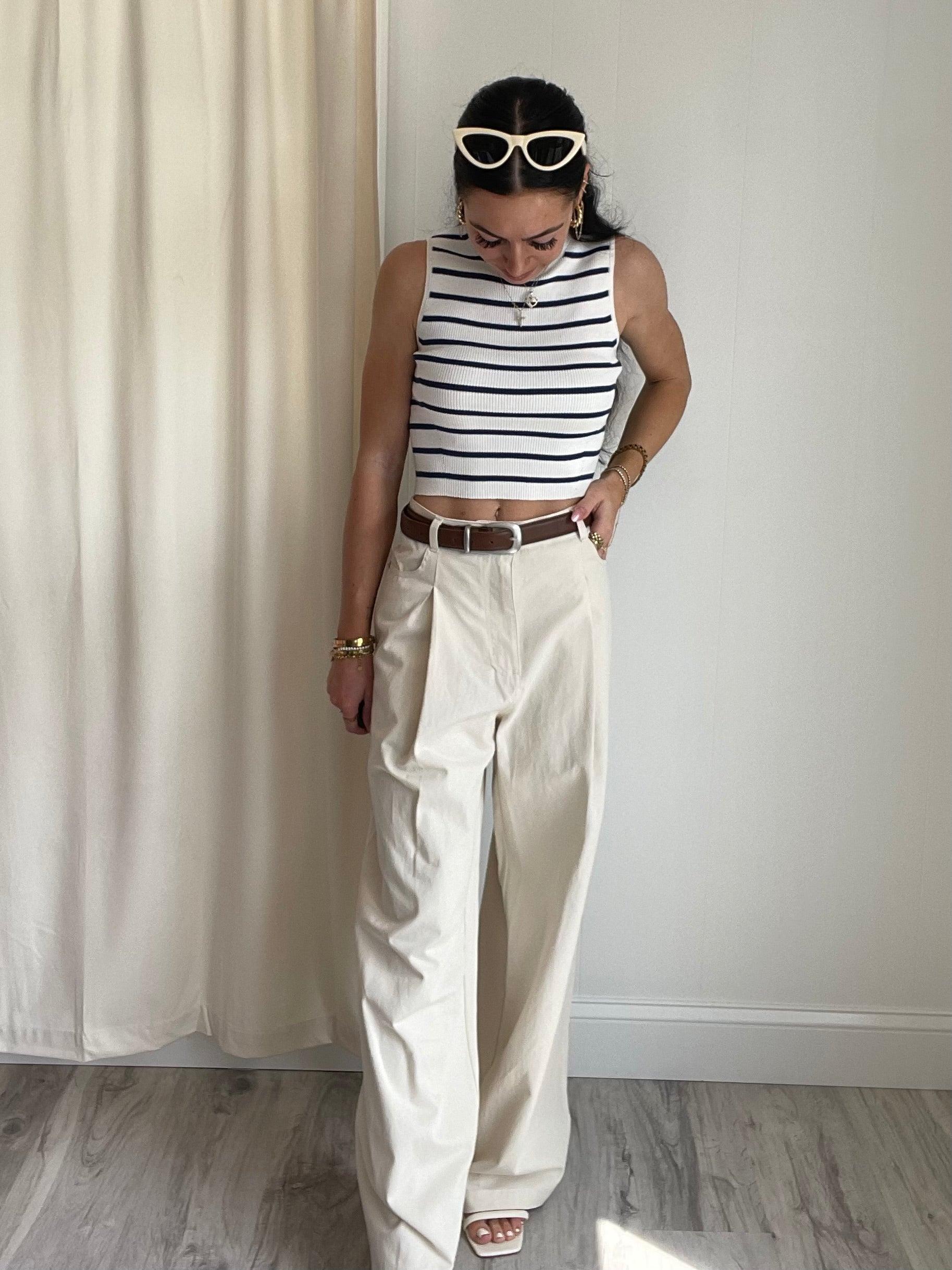 Upgrade your fashion game with Vernon's Beige Wide Leg Pants - complete with a brown leather belt for added style points! A must-have for any wardrobe that craves versatility and classic charm.