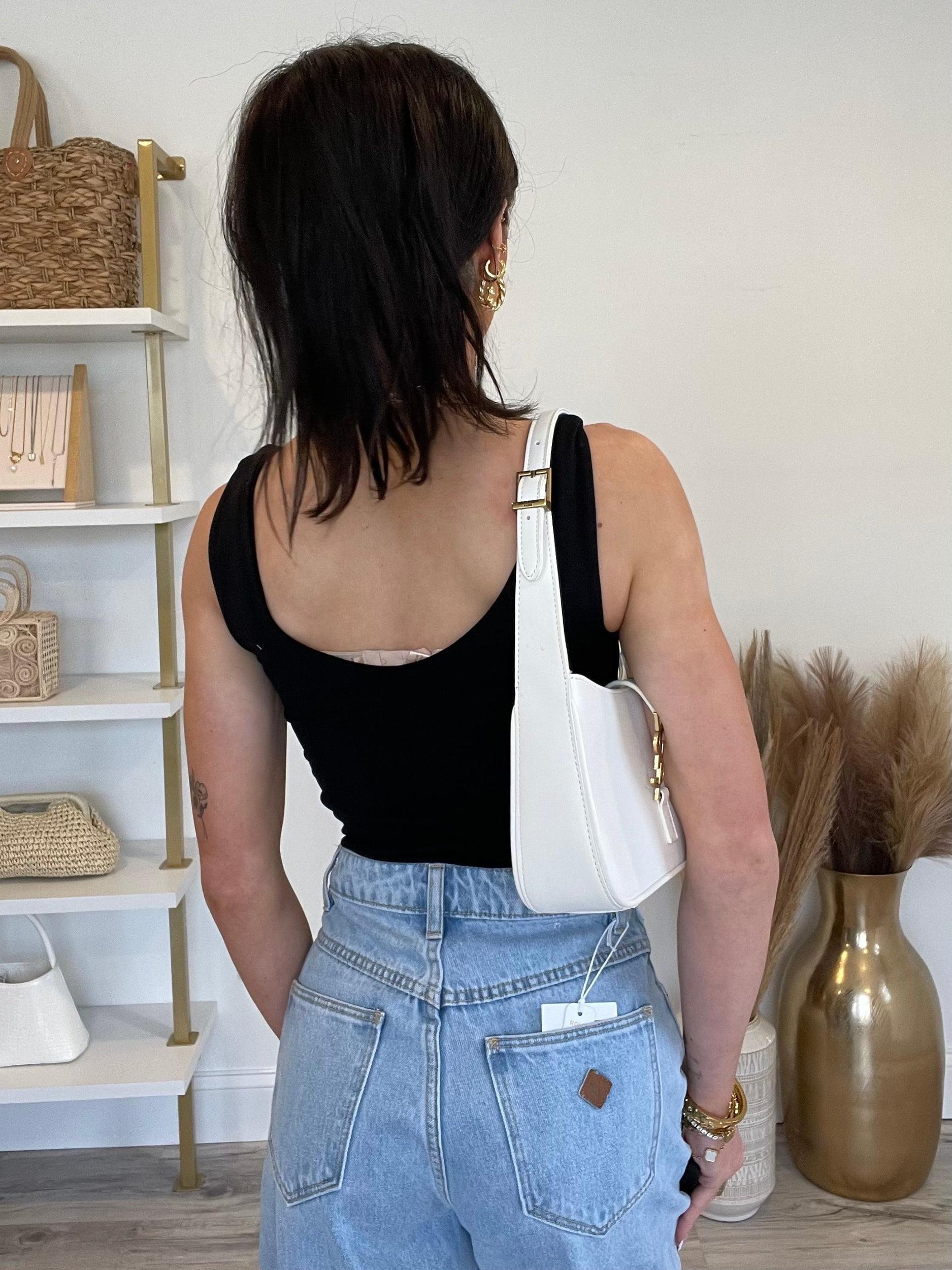 This innovative bodysuit features a double-layered, seamless design for ultimate comfort. It boasts a sleek U-V neck and is sleeveless for a versatile look. Complete with a convenient bottom snap closure, this bodysuit is a must-have for any wardrobe.