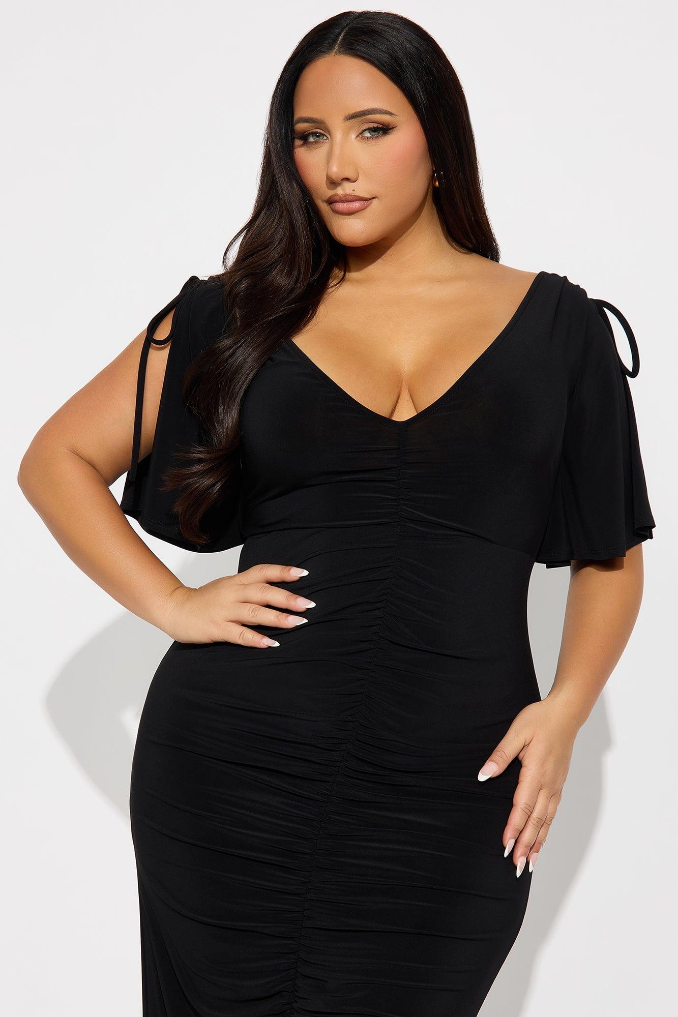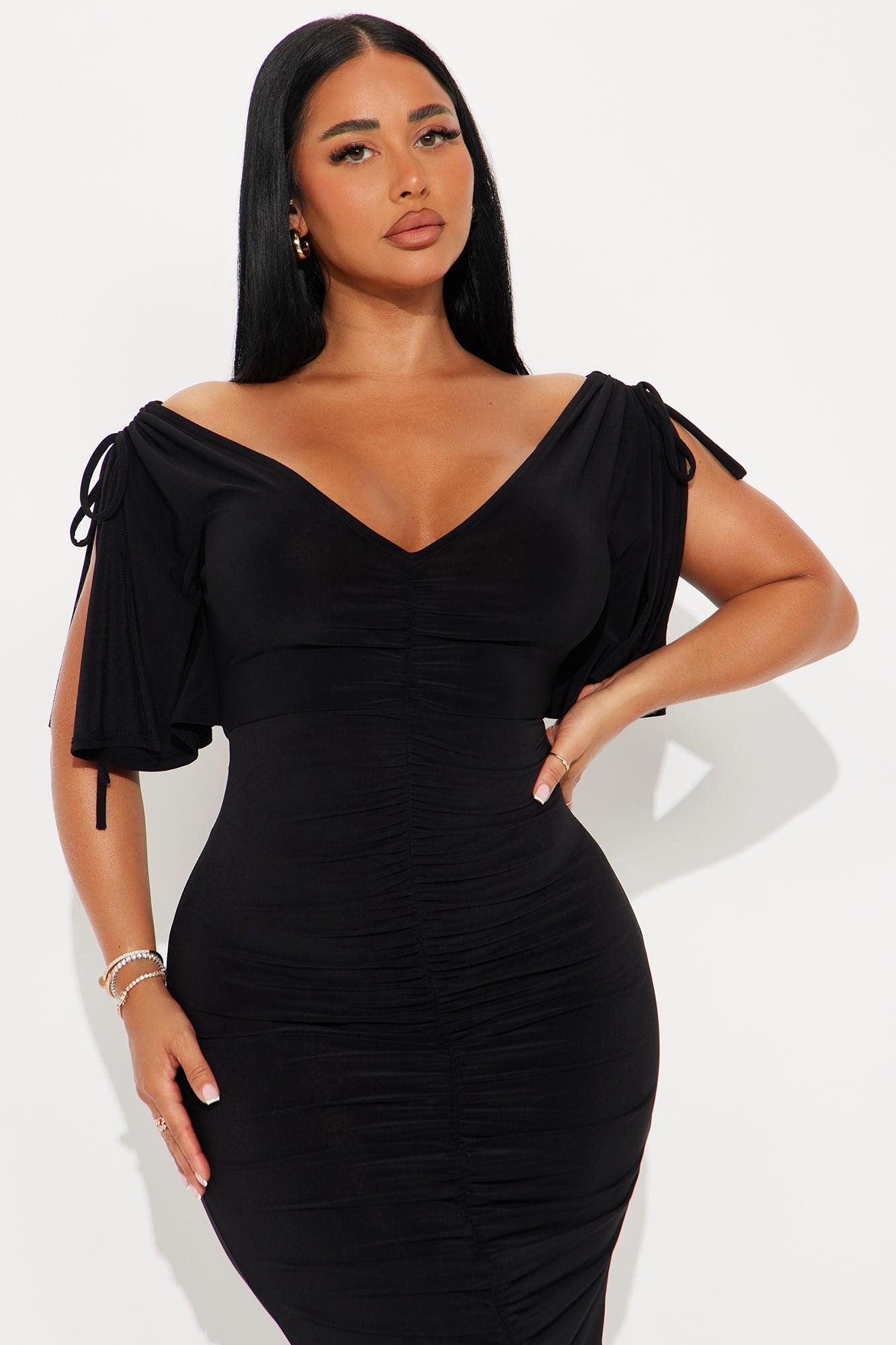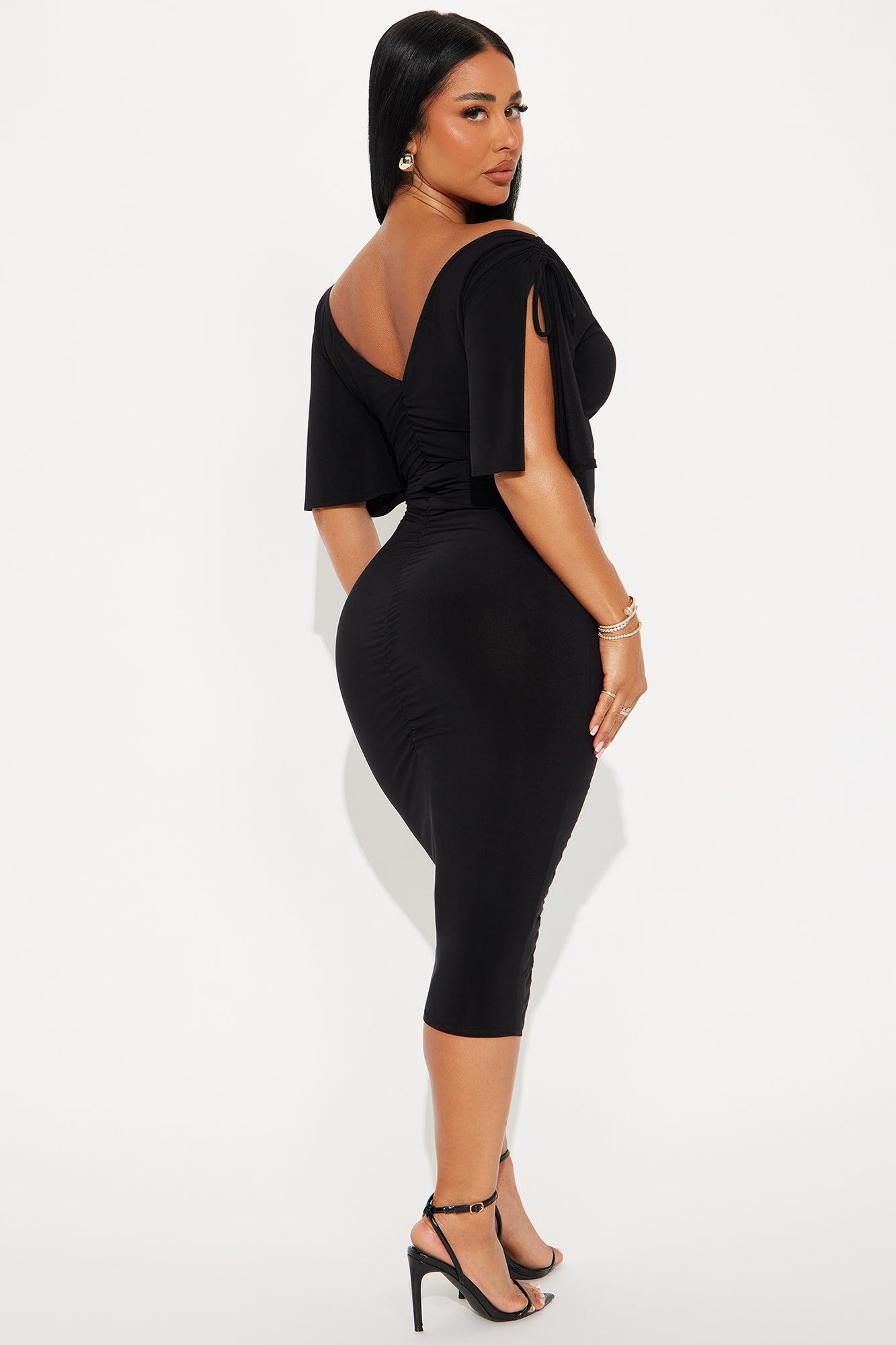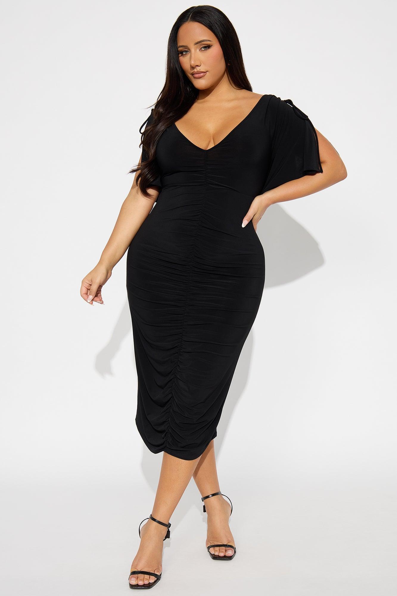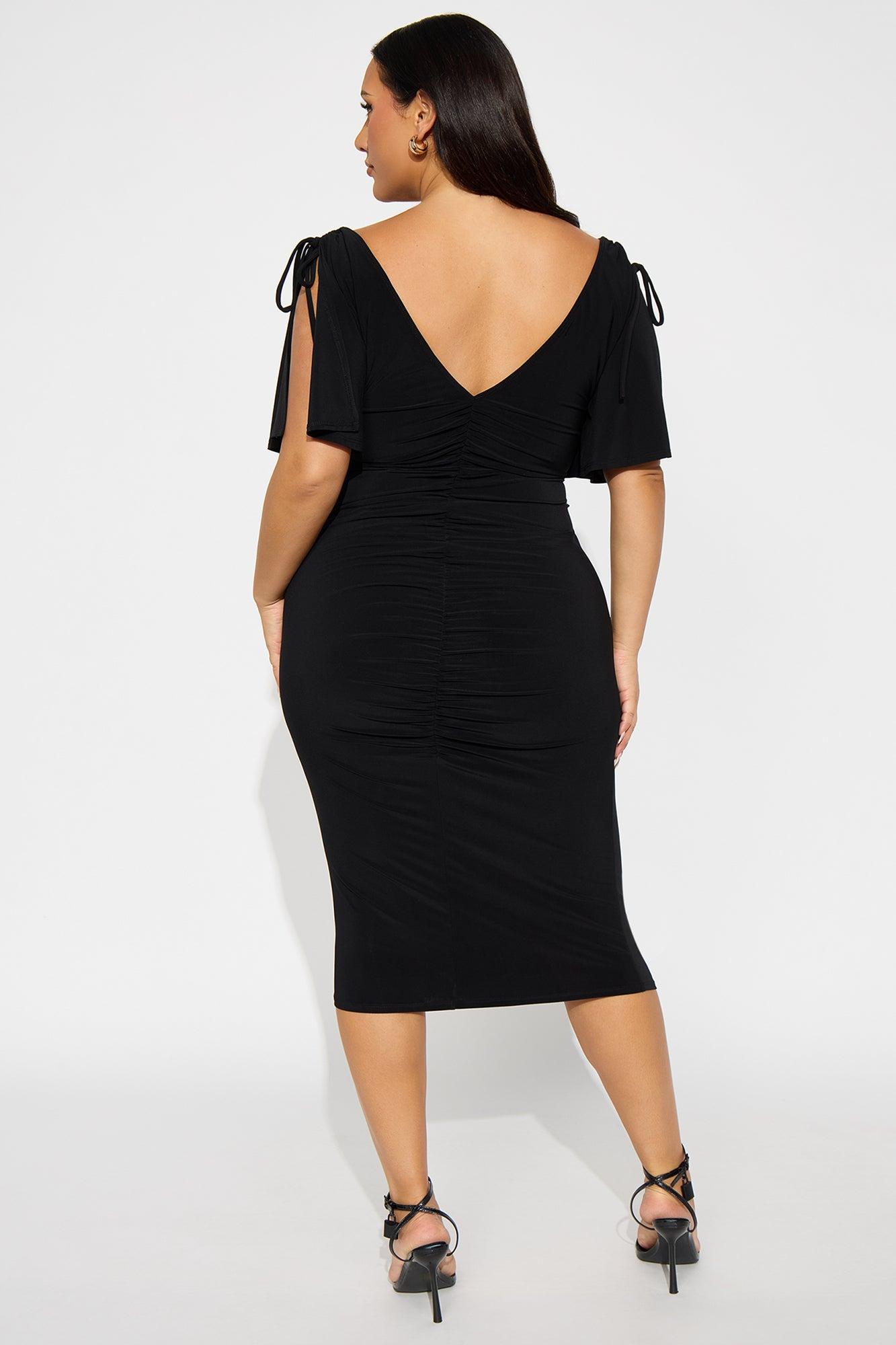 Find My Secrets V-Neck Midi Dress - Black Female