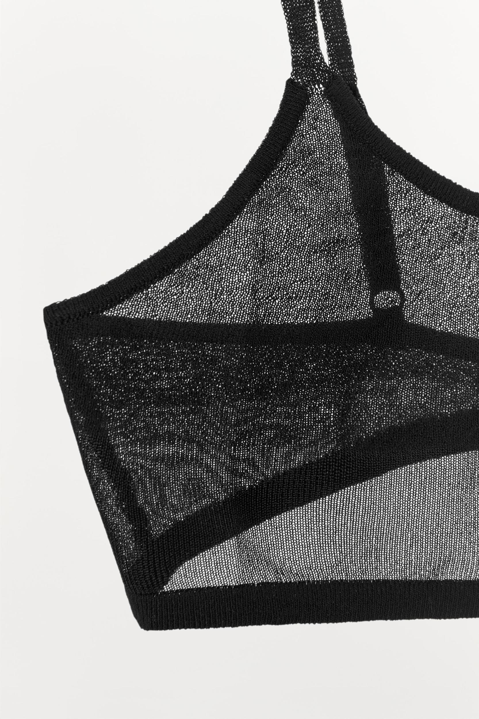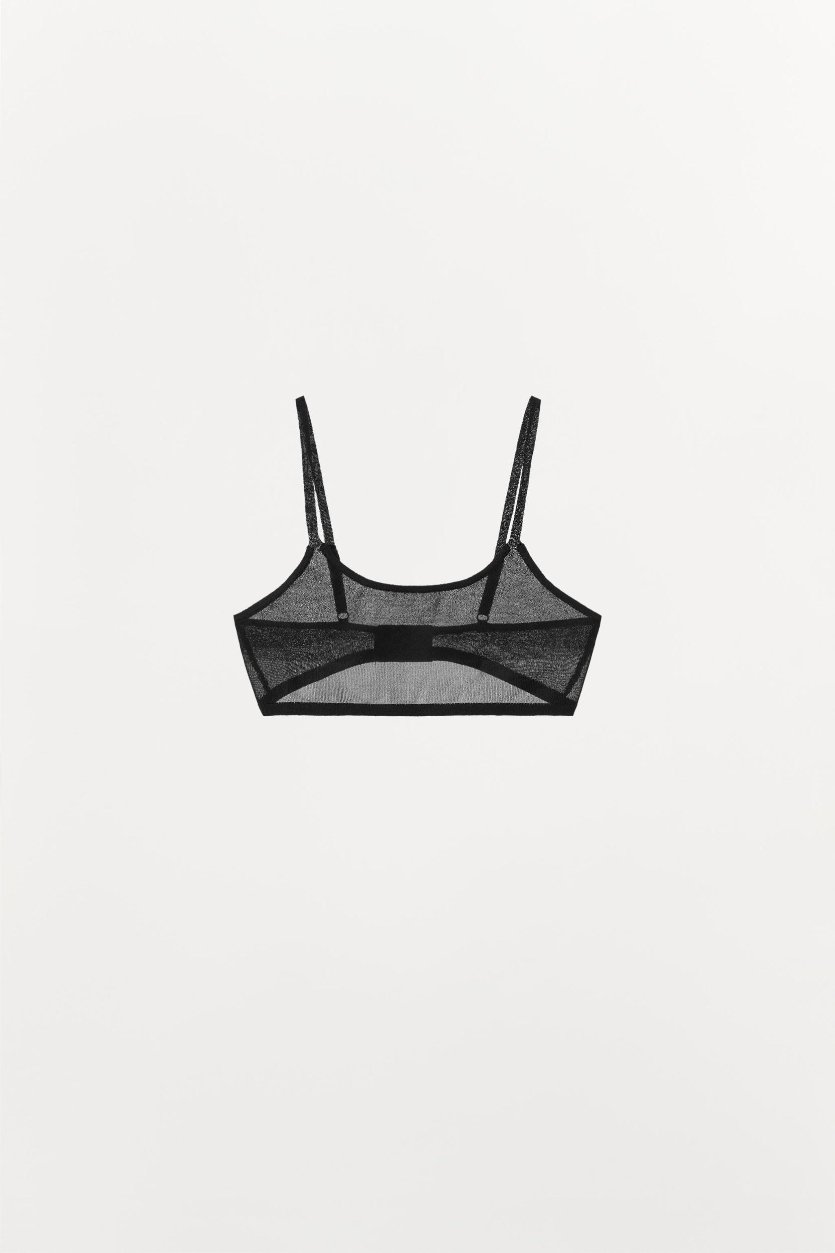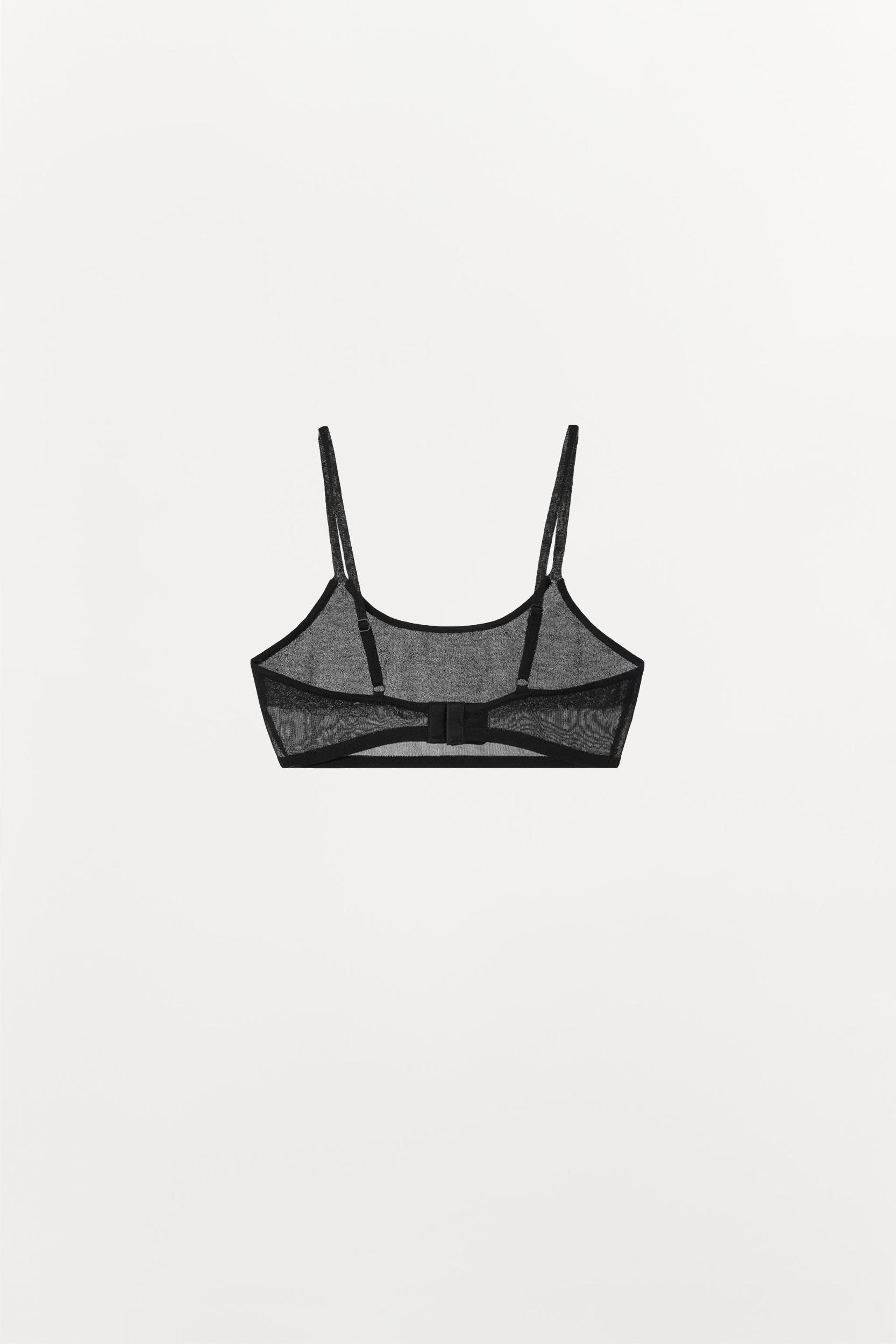 Bralette made of a viscose blend. Round neckline and adjustable thin straps. Metal hook closure at back.