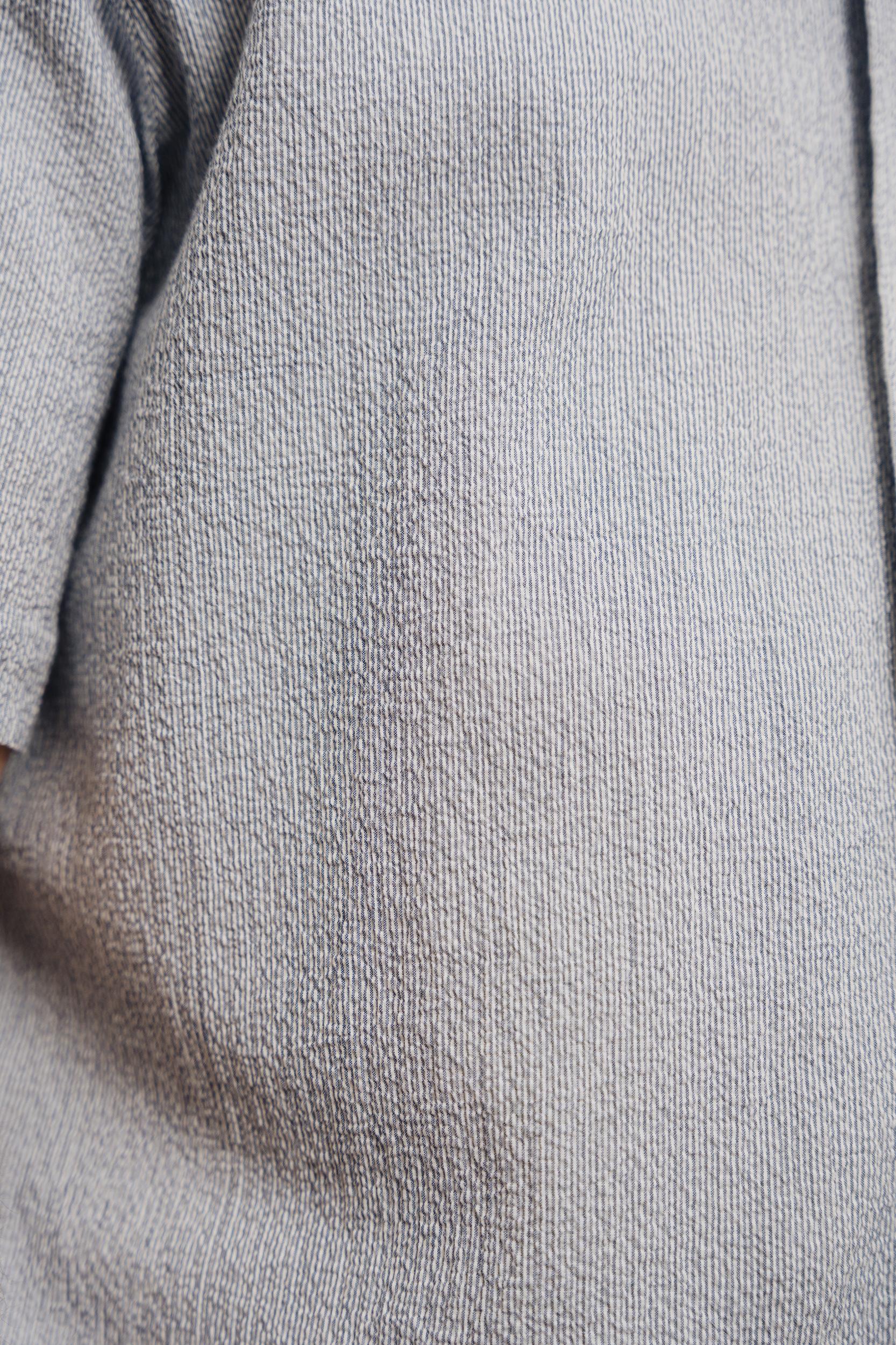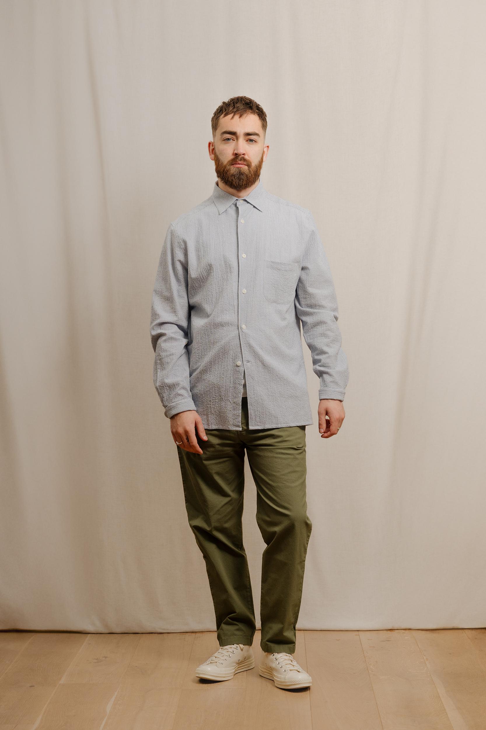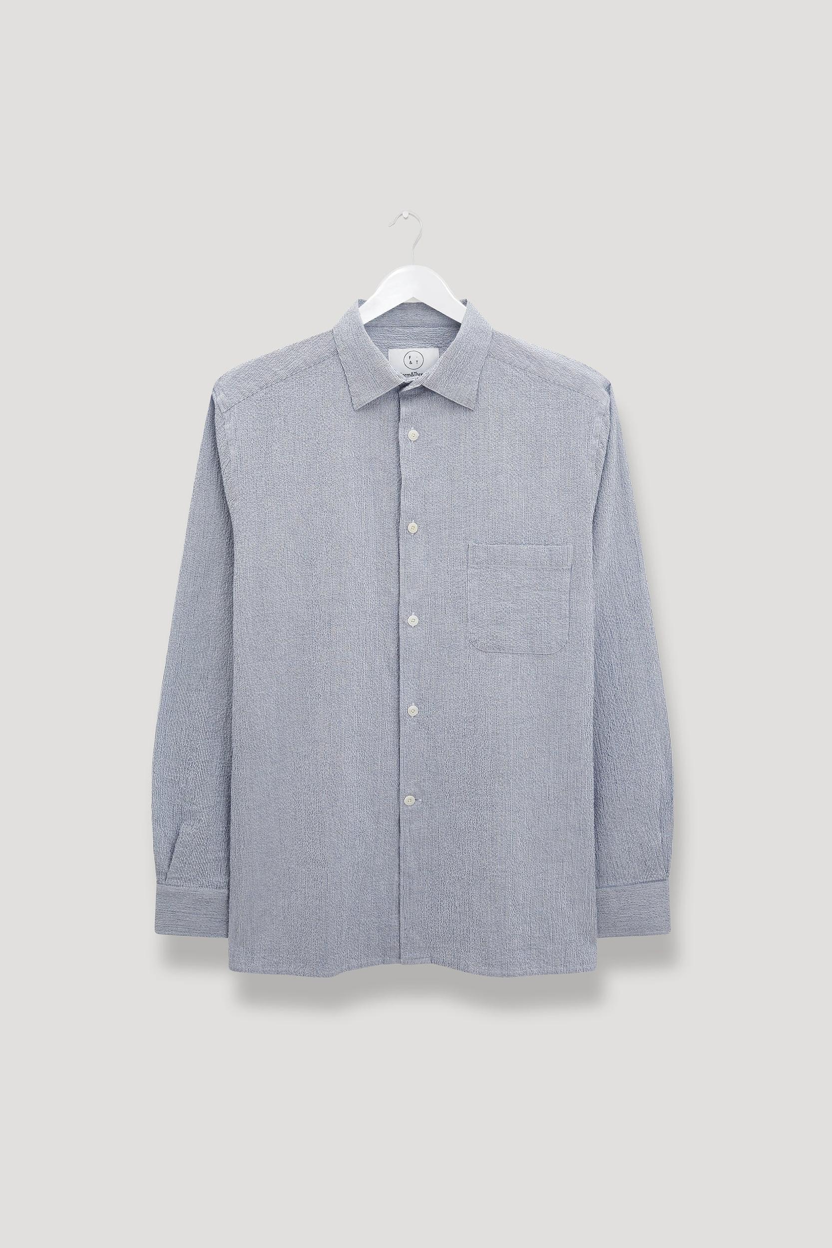 Expertly crafted in a luxurious, seersucker cotton with a unique textured finish and fine stripe. The Essential Shirt is cut with a straight hem and vent in the side seam for a cleaner look. Modern, pared back design with a minimal, french-front placket, patch chest pocket, unfussy and lightly fused collar, and finishe