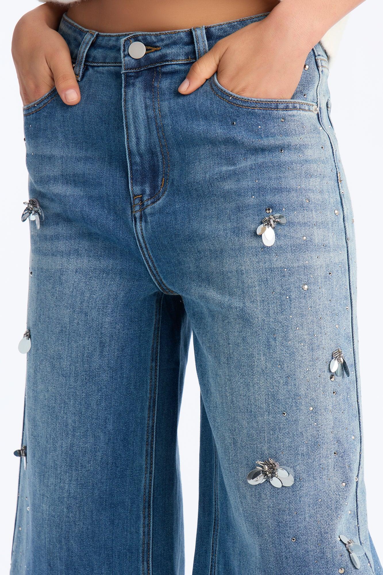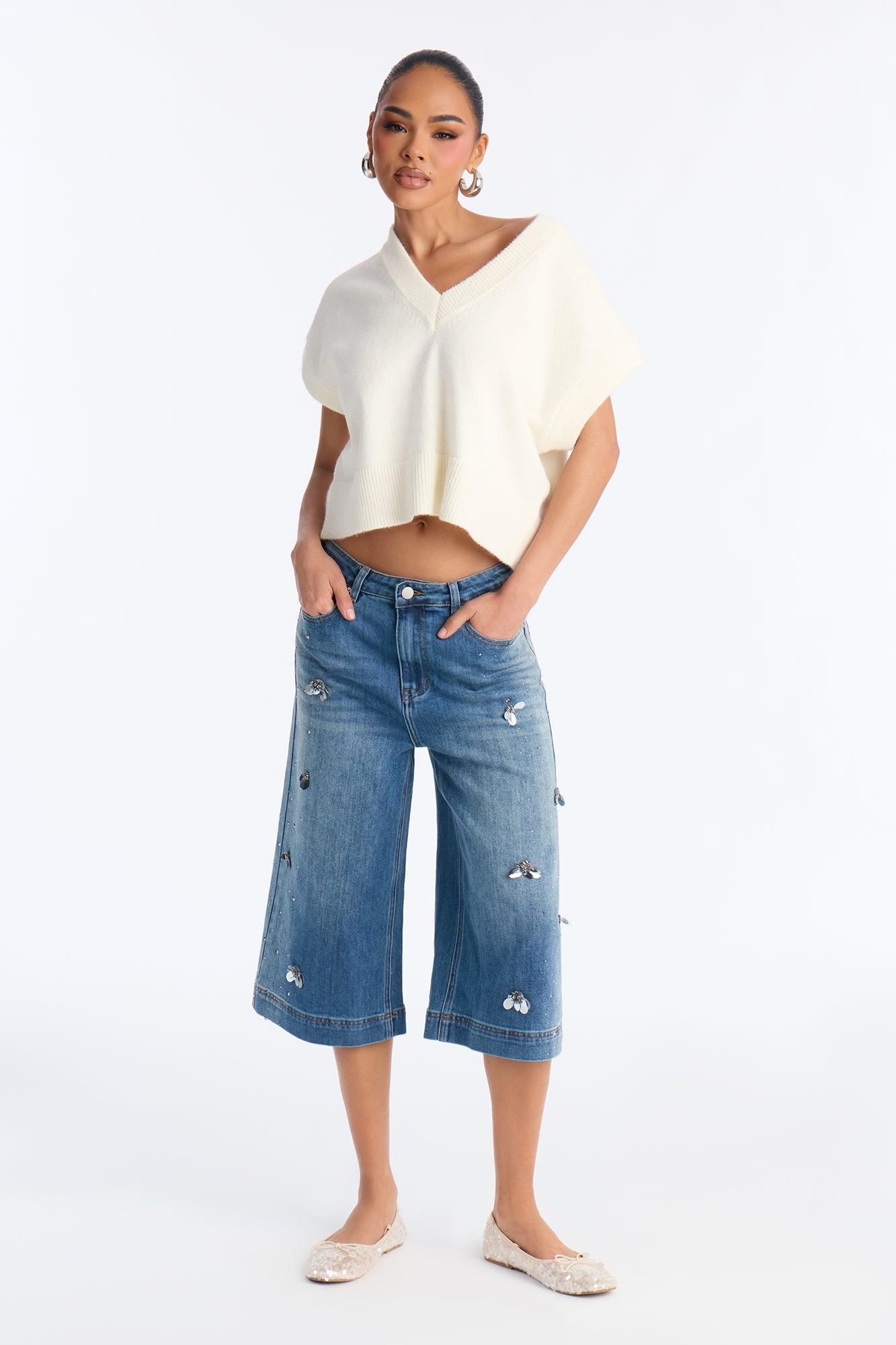 Fine Taste Embellished Culotte Jeans - Dark Wash Female