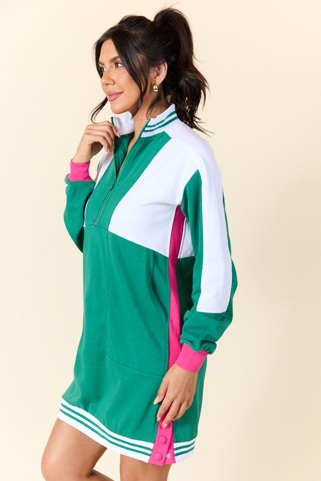 Quarter zip neckline, functional pockets, bottom side snap closure