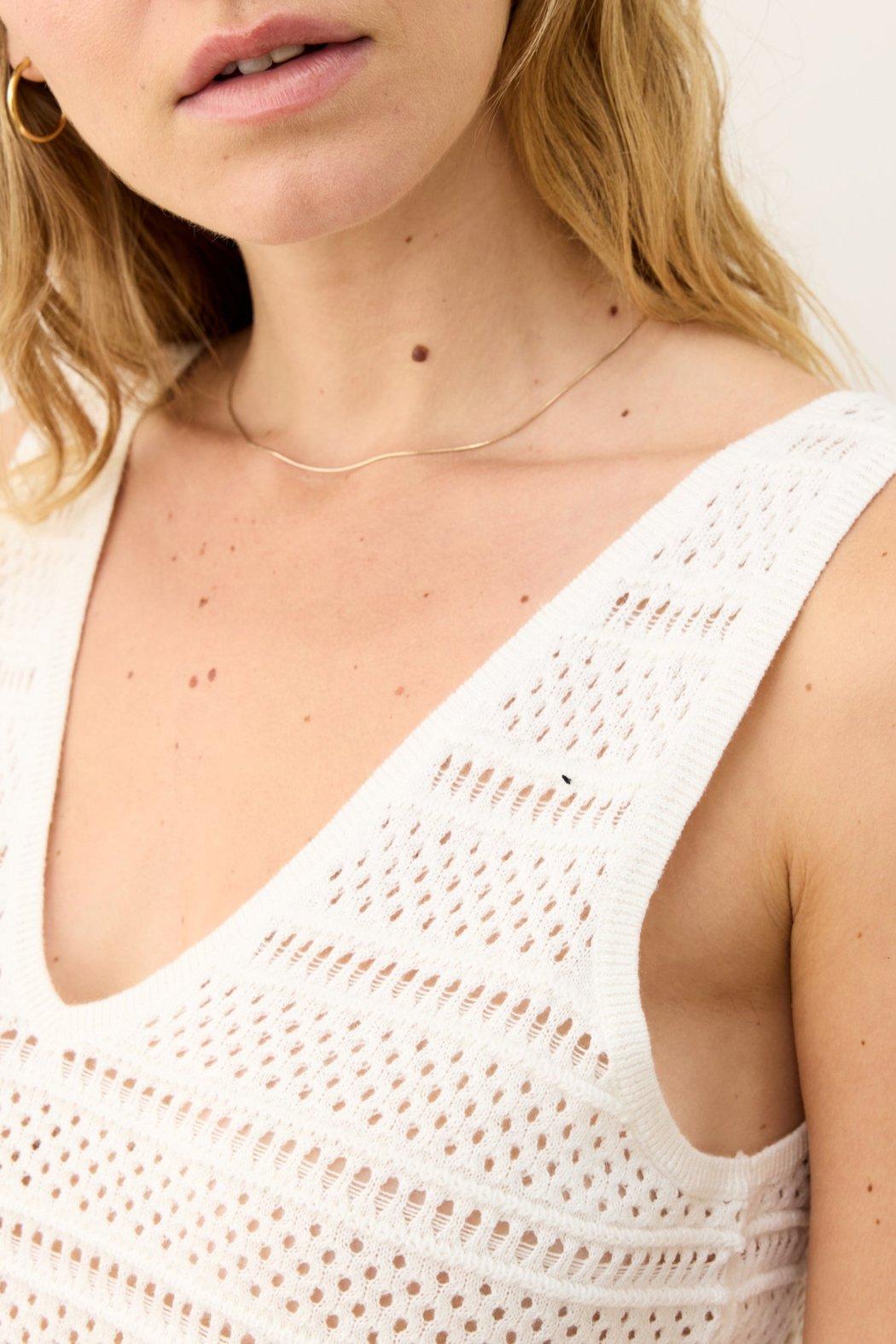 We took our fan-favorite sweater tank and refreshed it for the new season. We gave this one a breezy open stitch for that vintage-y, ight and airy feel, but still structured enough to wear on its own. The relaxed fit hits right at the high hip, making it the perfect match for shorts, high-rise denim, or even a swimsuit. Basically, it’s your new go-to for warm, lazy days. (AKA: the best kind of days.)