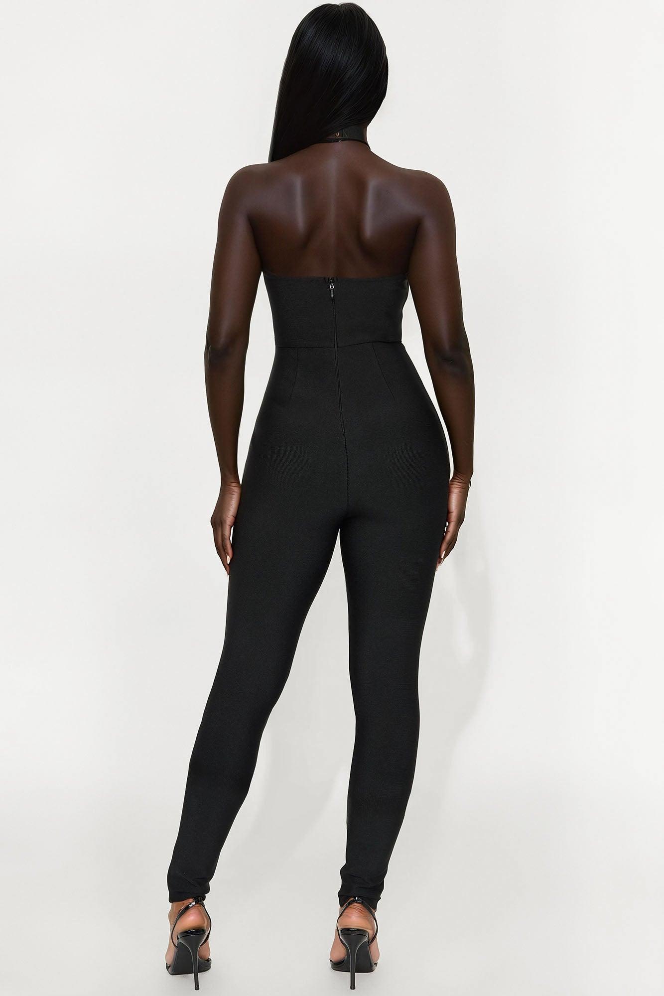 Fiona Halter Bandage Jumpsuit - Black Female