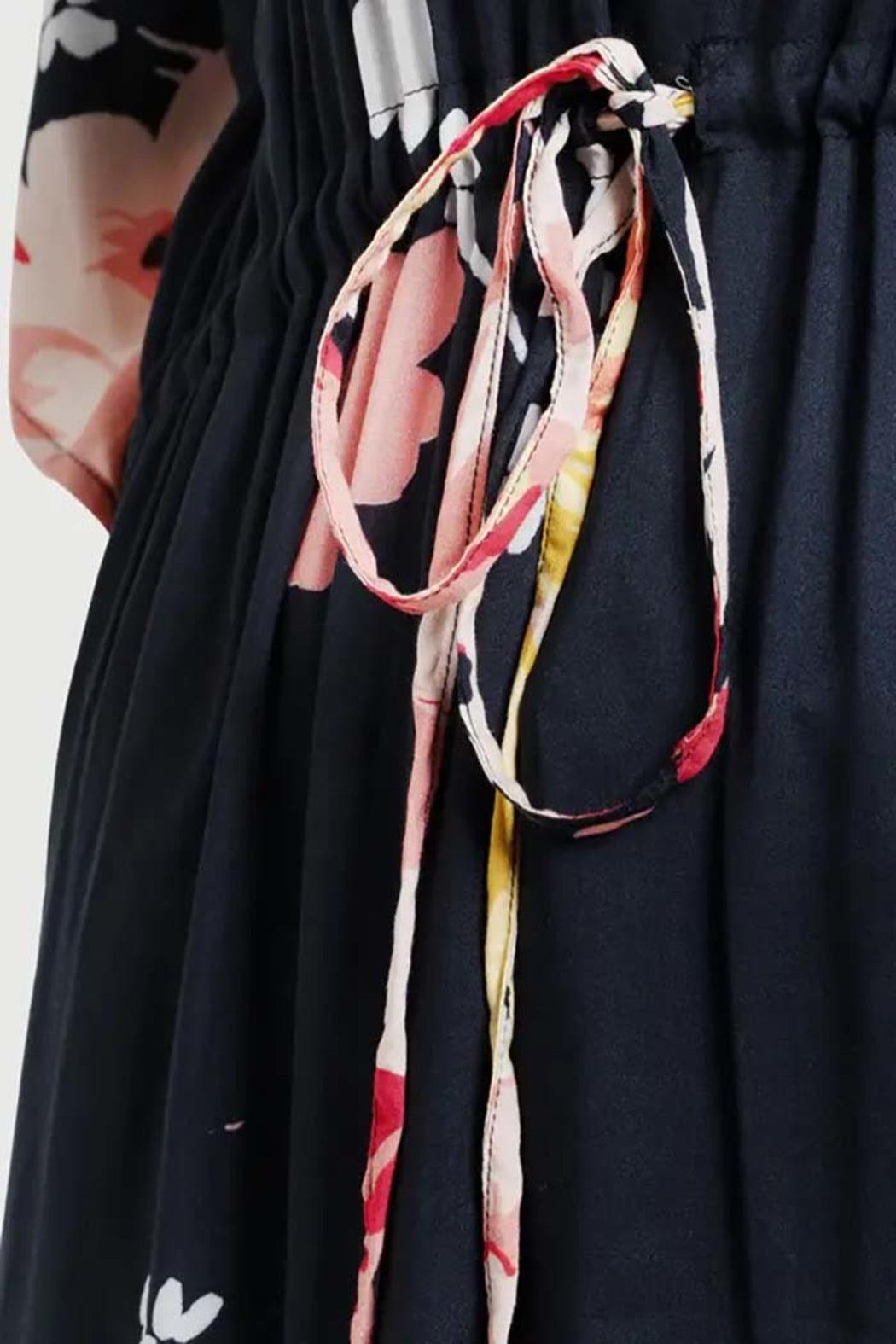 Our Multicolored Fiore Tie Waist Keyhole Kaftan, made from lightweight and breathable material, has a relaxed silhouette that offers a breezy and comfortable fit and a tie waist that allows you to cinch and define your waistline, adding a flattering and feminine touch to your look. Its multicolored floral pattern adds a touch of tropical elegance, making it an ideal cover-up that effortlessly transitions from resort wear to casual outings.