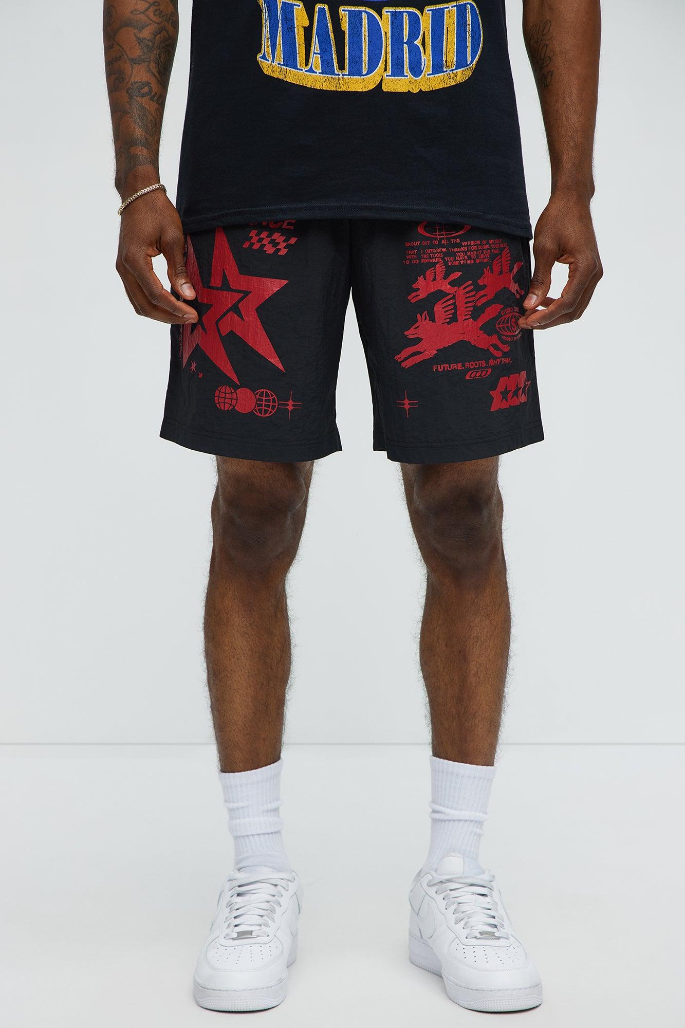 Available In Black/combo. Elastic Waist Band Drawstring Side Pockets Right And Left Leg Graphics 100% Nylon Disclaimer: Due To The Printing Process A Difference In Saturation May Occur. Each Garment Is Unique. Print Placement Will Vary. Imported California Proposition 65WARNING: Cancer and Reproductive Harm - www.P65Warnings.ca.gov.