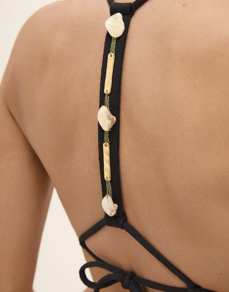 The ViX Firenze Edith T Back Tri Top is a classic triangle bikini top featuring gorgeous mother-of-pearl and gold-plated details; this popular silhouette offers excellent lift and support while elongating the back and flattering your natural shape. Style the Edith T Back Tri Top with a matching cover up and sandals for