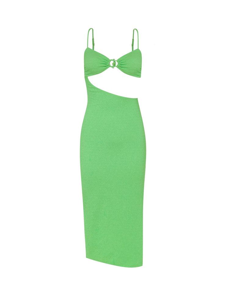 Inspired by the Audrey Erin top with the oversized metal rings and pin reimagined as a sultry dress. Wear with strappy heels for a night out and gold accessories. Features: Adjustable straps Back clasp closure Form fitting Side slit Style # 352-847-028