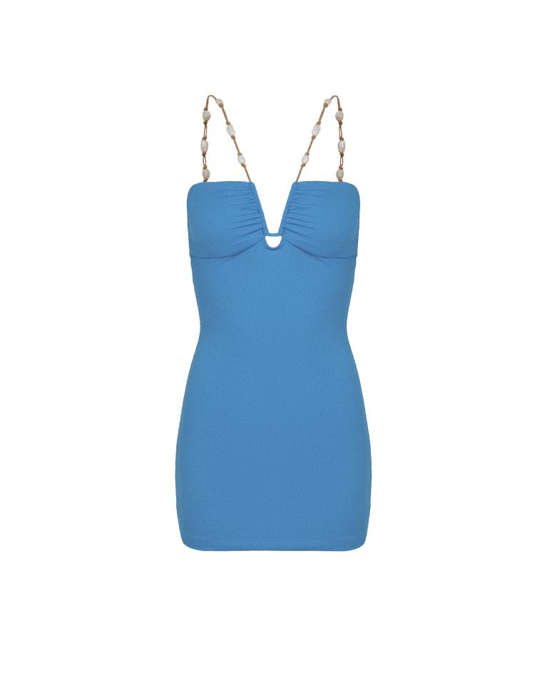 The ViX Firenze Ney Short Dress is a form-fitting bodycon mini that beautifully accentuates your shape. Featuring a halter neckline, boning in the bust for added support, and adjustable shoulder straps adorned with the Ney detail for an elevated touch. Style the Ney Short Dress with sandals or heels and ViX accessories