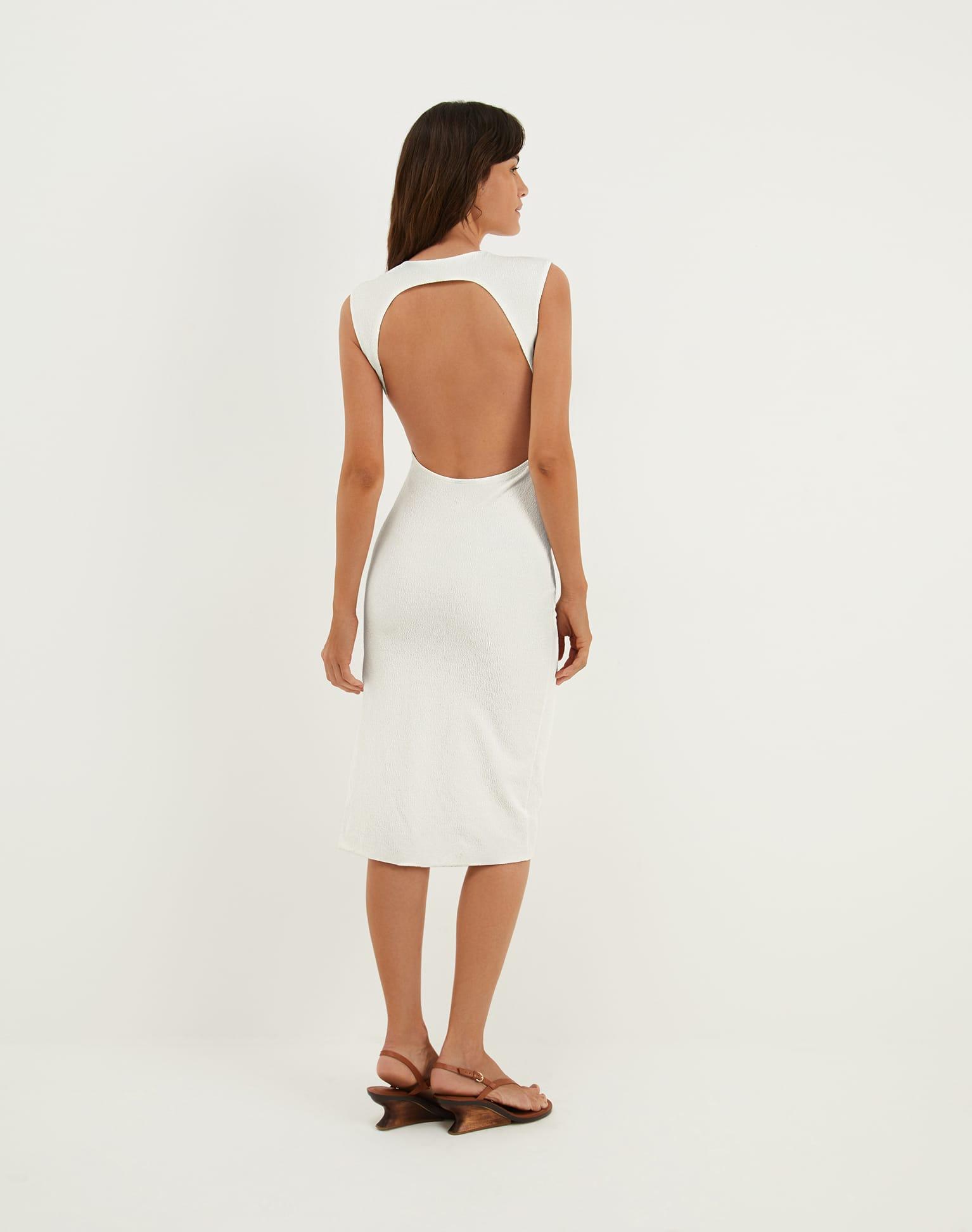 The Firenze Pina Midi Dress by ViX Paula Hermanny captures the essence of refined summer dressing. Designed with a flattering deep V-neckline, an elegant open back, and finished with the signature Liza detail at the bust, this midi silhouette brings a graceful, elongating effect for day-to-night ease.Elevate the Pina M