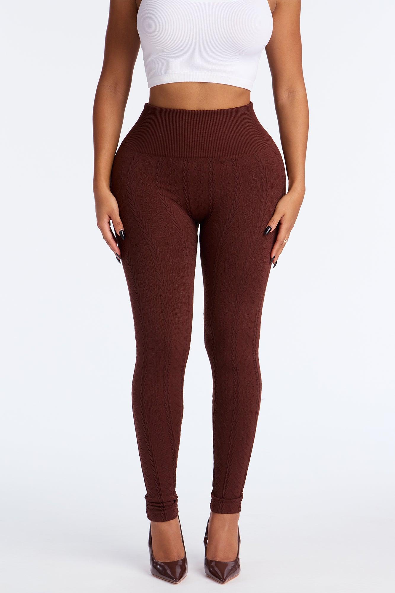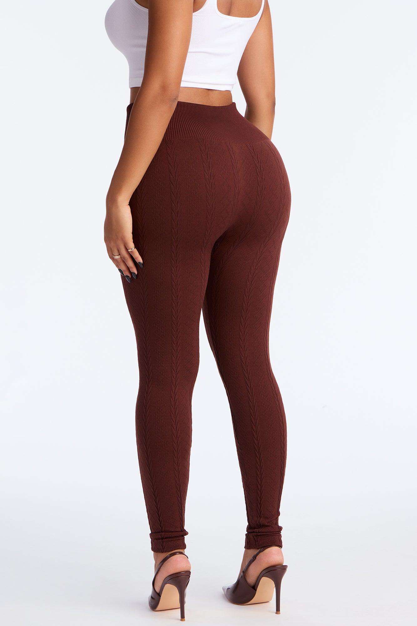Available In Black And Brown. Seamless Legging Elastic Waistband High Rise Fleece Lined 28" Inseam Cable Knit Stretch Self : 94% Polyester 6% Spandex Imported