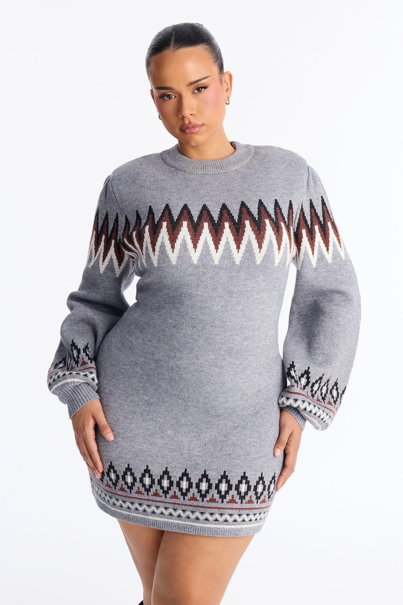 Fireside Nights Long Sleeve Sweater Mini Dress - Grey Female