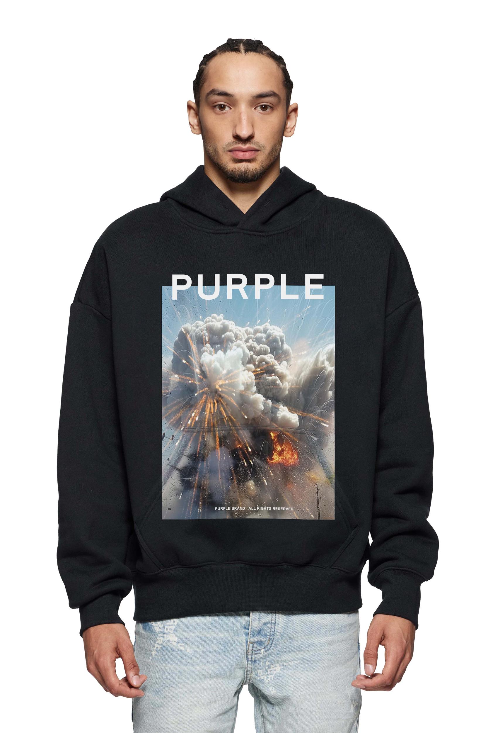 This hoodie is defined by a firework graphic with Purple Brand logo lettering across the chest. It’s cut for an oversized fit from black heavyweight fleece and features a large kangaroo pocket as well as ribbing at the cuffs and hem. Pre Spring 2025 White Label 100% Cotton 28 1/4" Length, 27 1/2" Chest, 36 7/8" Sleeve Oversized Fit Heavyweight Fleece Silicone Print & Digital Print