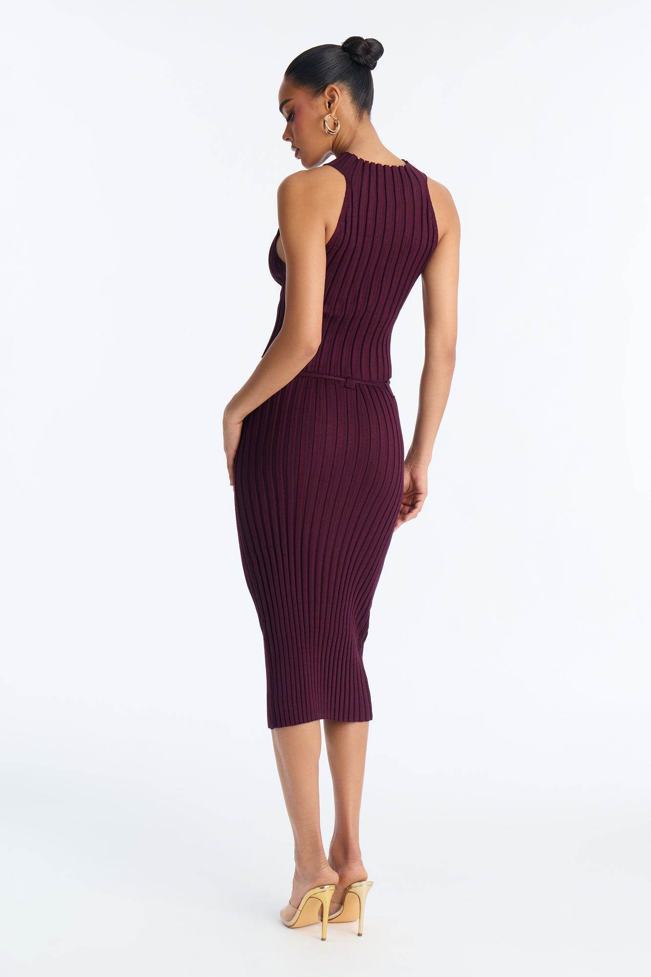First Date Fine Gauge Sweater Midi Skirt Set - Wine Female