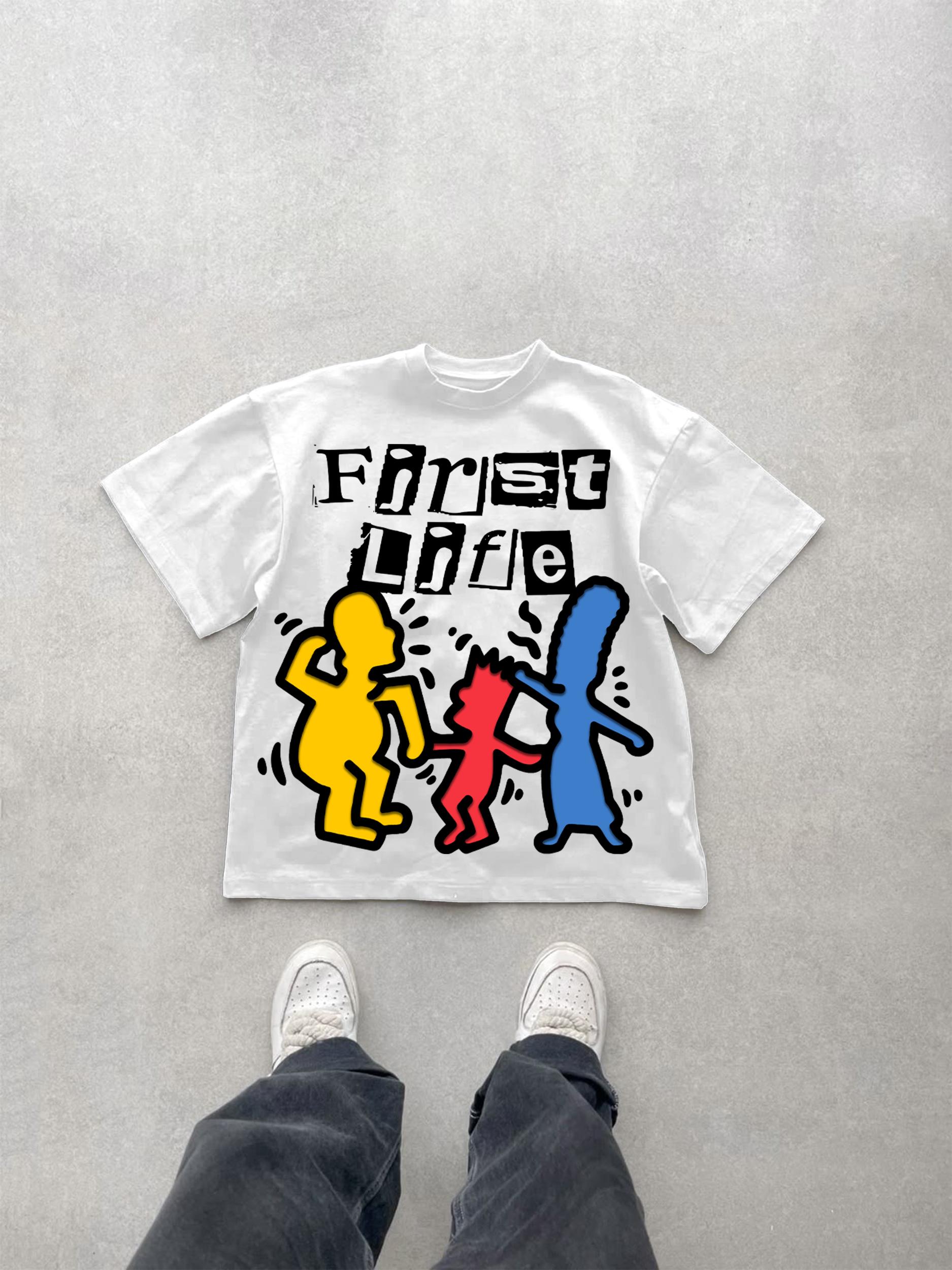 First Life Cartoon Anime Silhouette Graphic Cotton T-shirt
