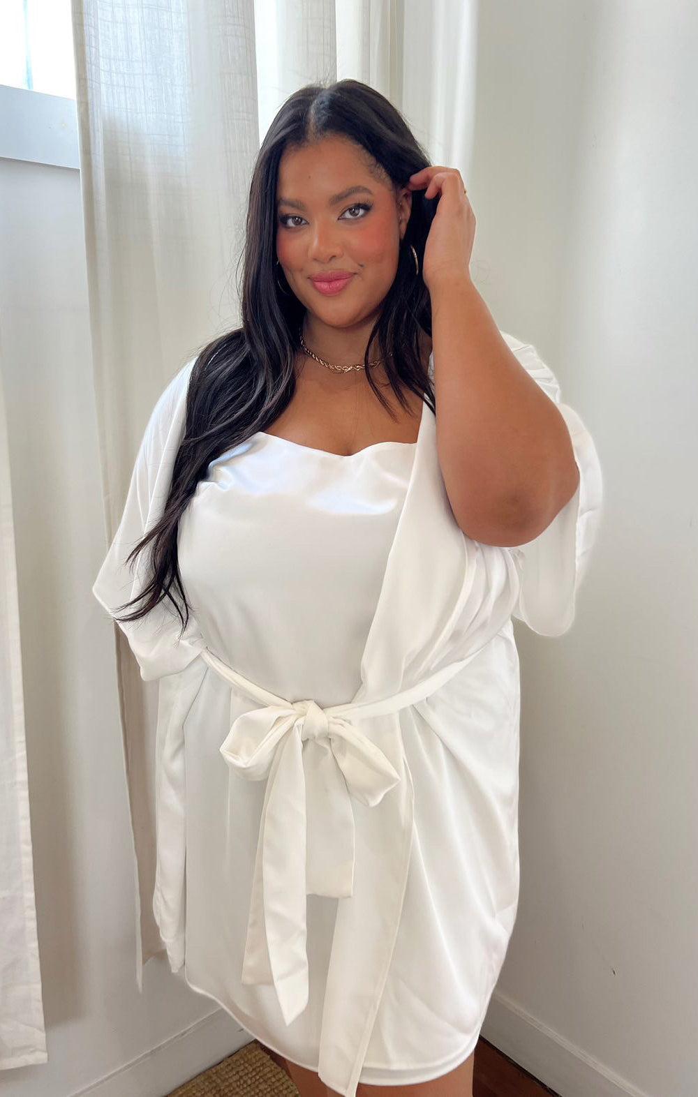 This fluttery robe is a bridal suite essential! Relaxed and smooth to the touch, it's perfect for the bride and her girls to wear while getting ready for the wedding.