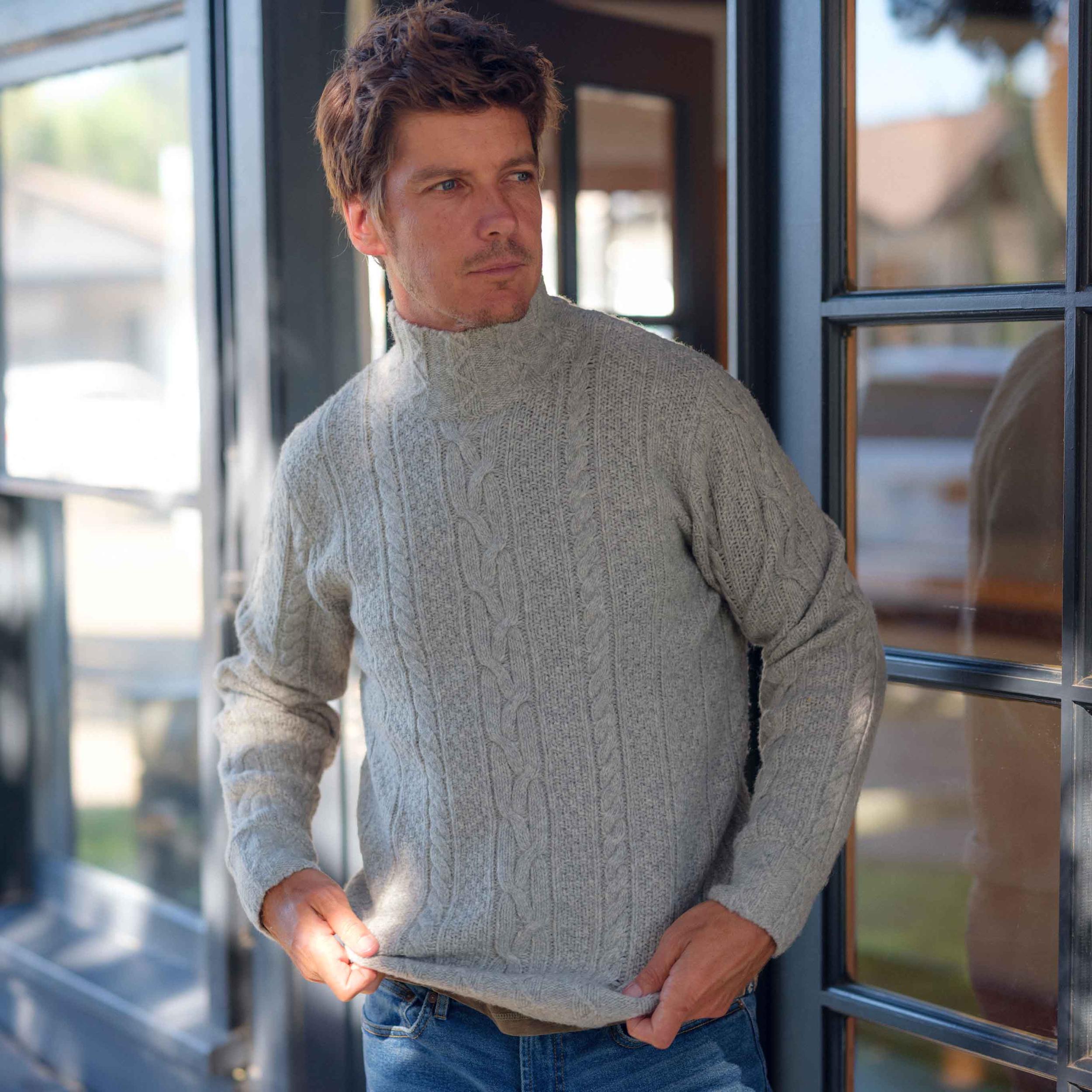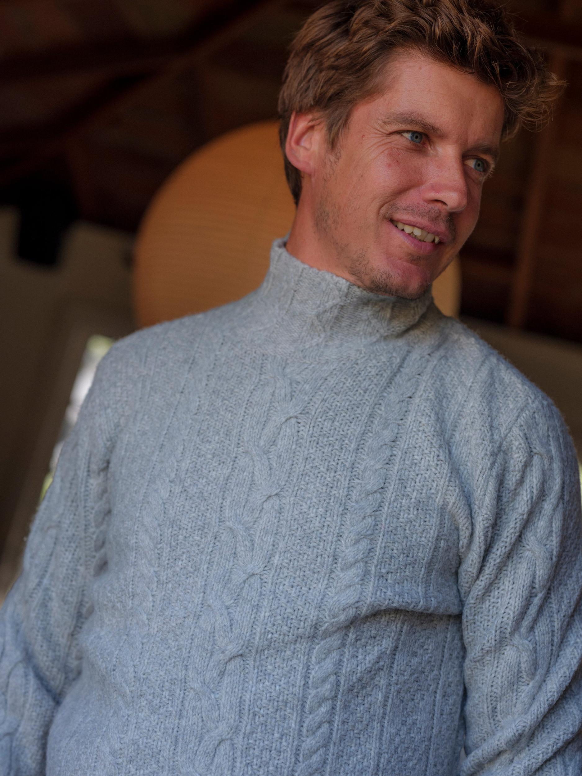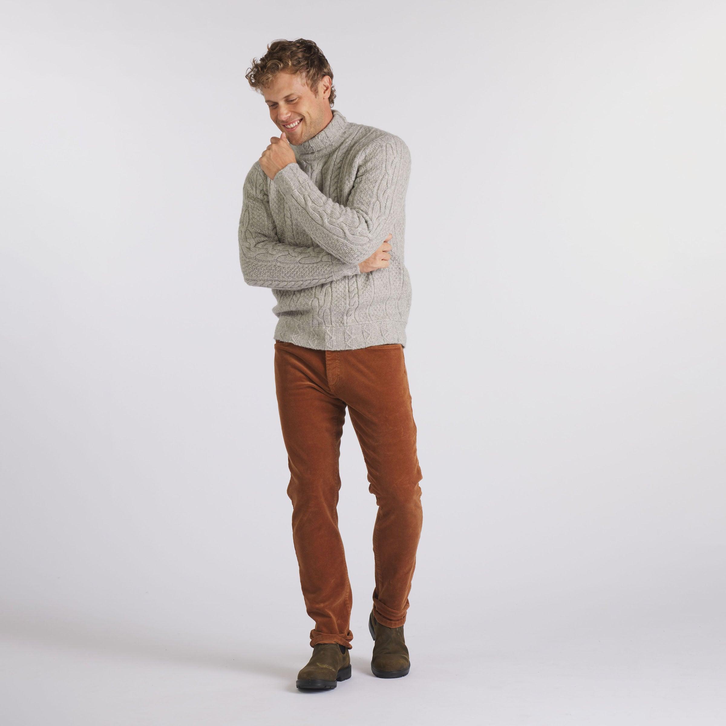 This fisherman cable sweater is the fashionable way of winning the war against the cold. The 3GG masterpiece boasts the soft wool blend that will make you question why you ever thought summer was a good idea. And while it's the embodiment of style (think Robert Redford in The Way We Were), it's also remarkably easy to pull off. Layer it beneath one of our classic blazers or pair it with the retro-inspired Watson Car Coat for a timeless and sophisticated look. The Model is also wearing: Edward Stretch Straight Fit Denim - Vintage Wash Model: Leo is wearing size medium and is 6'1". The Model is also wearing:Burlington 5 Pocket Stretch Corduroy - Rawhide. Model:Chris is wearing size medium and is 6'. ----Details---- 3GG cable stitch Fully fashioned Turtleneck Imported ----Materials---- 44% Wool 34% Acrylic 22% Nylon ----Size & Fit---- Measuring Method: All measurements are in inches and based on a flat garment, as shown below. For comparison with one of your existing garments, please lay garment on a flat surface and follow the key measurement points. For chest and neck, if you double the flat measurement, you will get close to the full body measurement. ----Care---- Hand wash cold with similar colors Do not soak before washing Do not bleach Remove promptly after wash Lay flat to dry Do not tumble dry Cool iron on reverse side if necessary Or Dry Clean