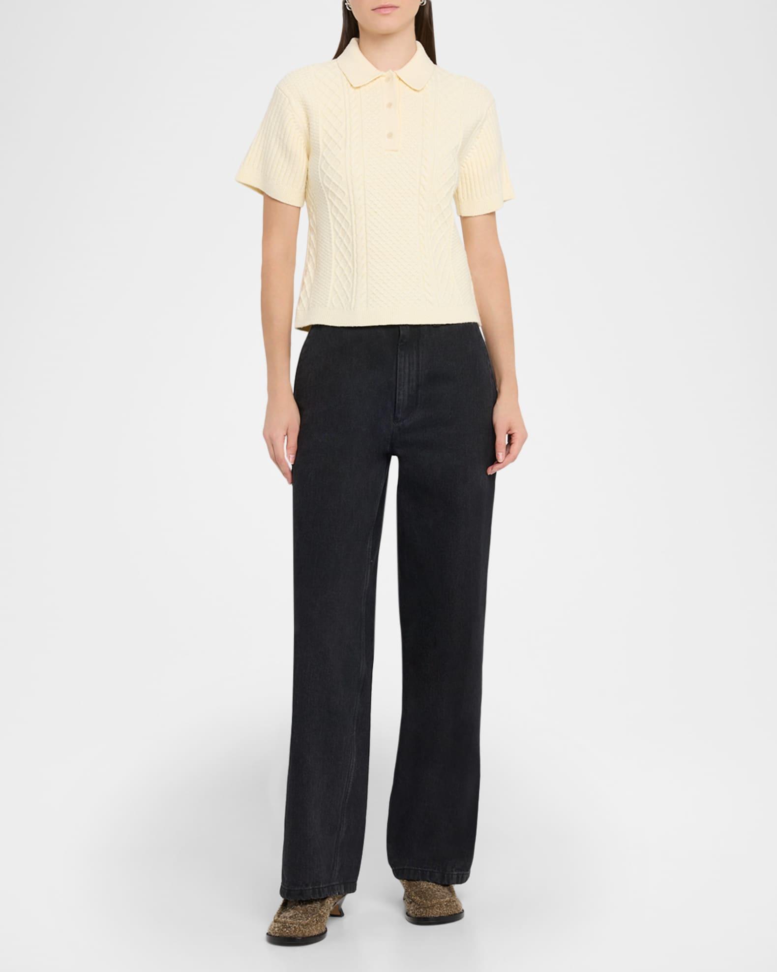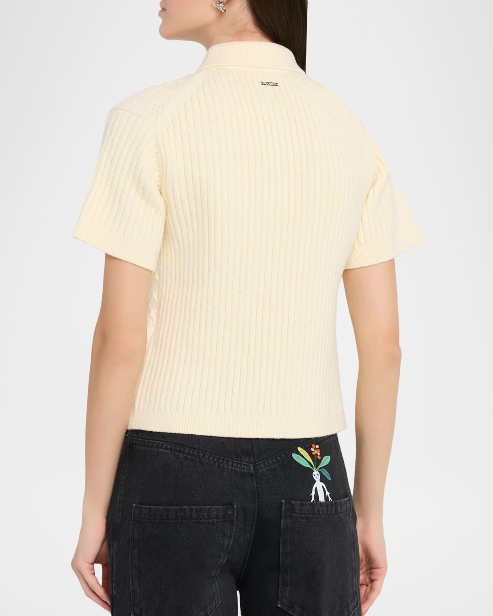 Fisherman Short-Sleeve Crop Polo Sweater