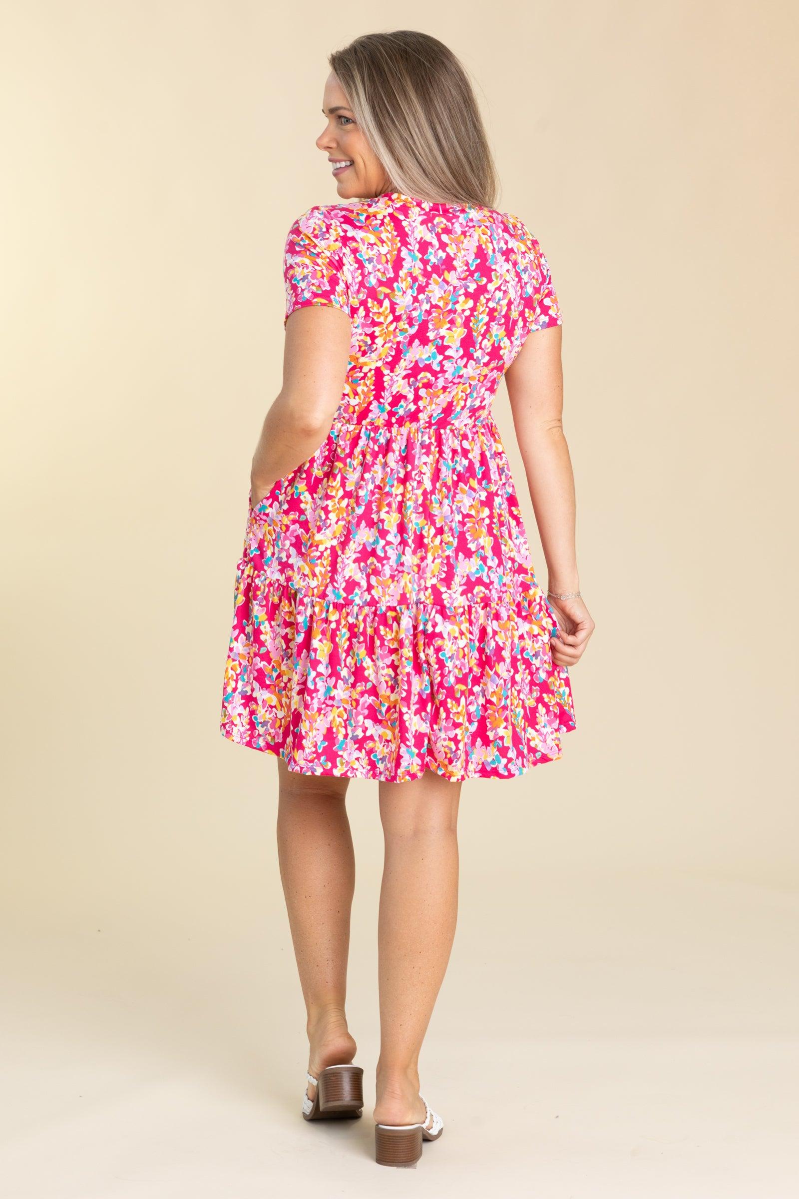 Product Details Colors: Black, Magenta, White/ Hot Pink, Marigold, White/ Seafoam, Pink, White/ Mint, Peach, White, Blush, Sage, Olive, Brown/ Turquoise Blue, Purple, White, Red, Pastel Yellow, Mint, Baby Blue, Lavender/ Hot Pink, White, Pastel Yellow, Marigold, Turquoise, Orange, Pink, Lavender, Periwinkle Print: Floral Neckline: Round Sleeve: Short Sleeve Hemline: Straight Brand: Haptics Material and Care 95% Polyester 5% Spandex Hand Wash Cold Hang/Line Dry Size and Fit Small: Bust 32" Waist 26" Length 34" Medium: Bust 34" Waist 28" Length 34.5" Large: Bust 36" Waist 30" Length 35" 1X Large: Bust 40" Waist 34" Length 36.5" 2X Large: Bust 42" Waist 36" Length 37" 3X Large: Bust 44" Waist 38" Length 37.5" Erica is 5’7” and wearing her true size small Holsten is 5’5” and wearing her true size large