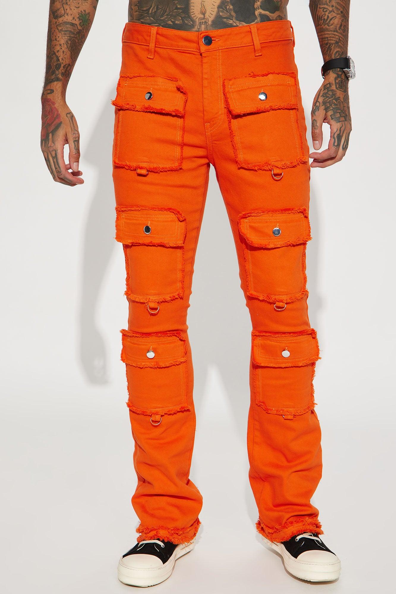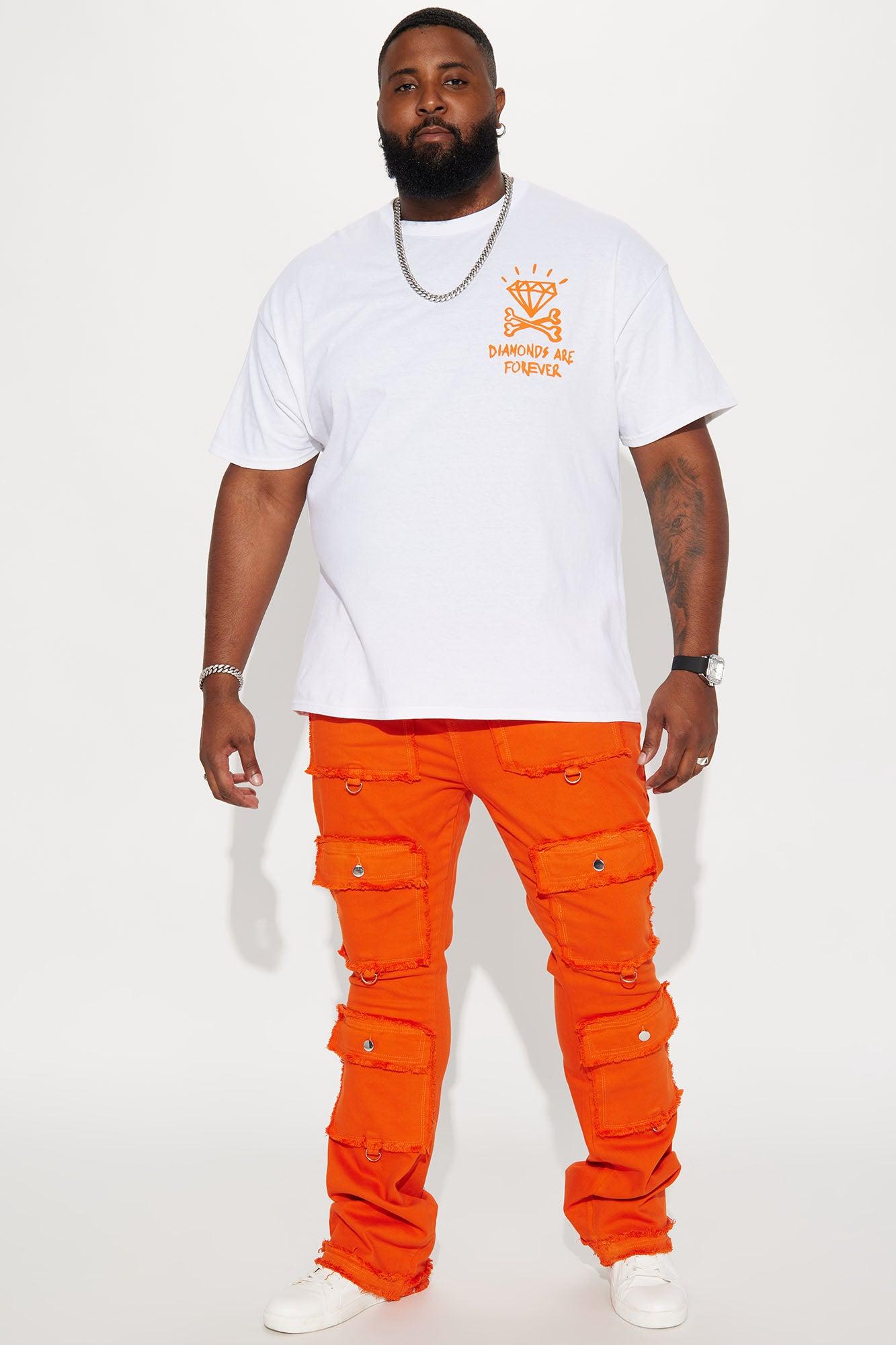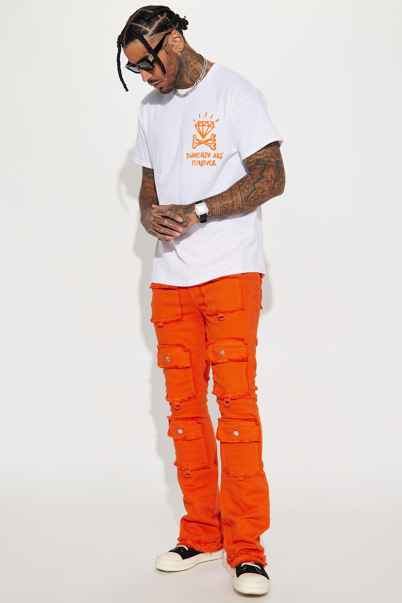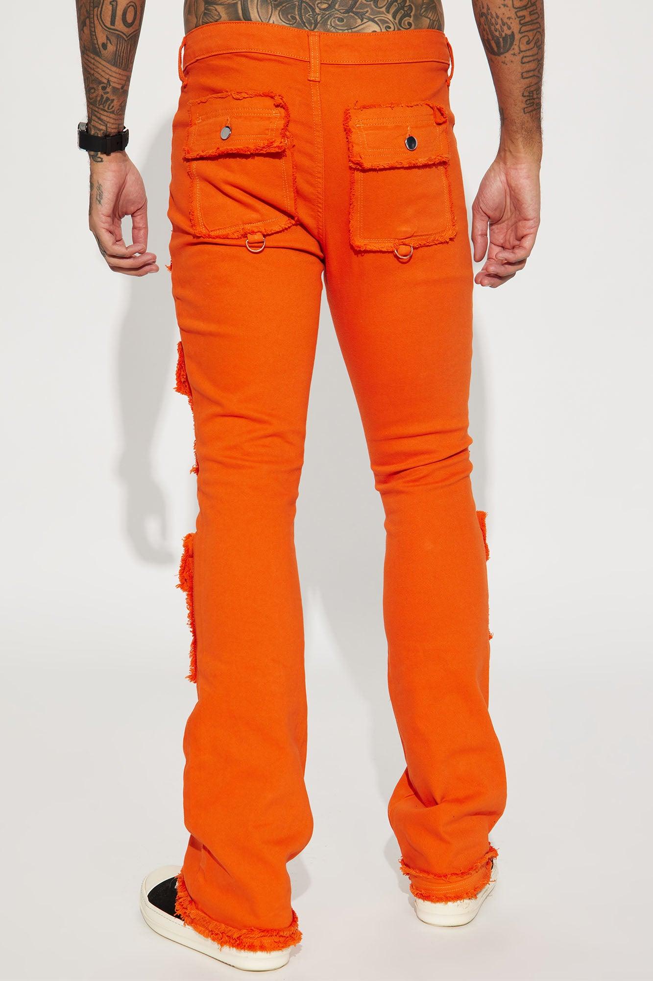 Available In Orange. Model Height: 6'4 - Waist Size: 34 - Wearing Large Big & Tall: Height 6'5 - Waist Size: 42 - Wearing XXXL Stretch Fabric Stacked Skinny Flare Zip Fly Button Closure Square Pockets With Shank Button Fray Detail Open Hem 97% Cotton 3% Spandex Imported