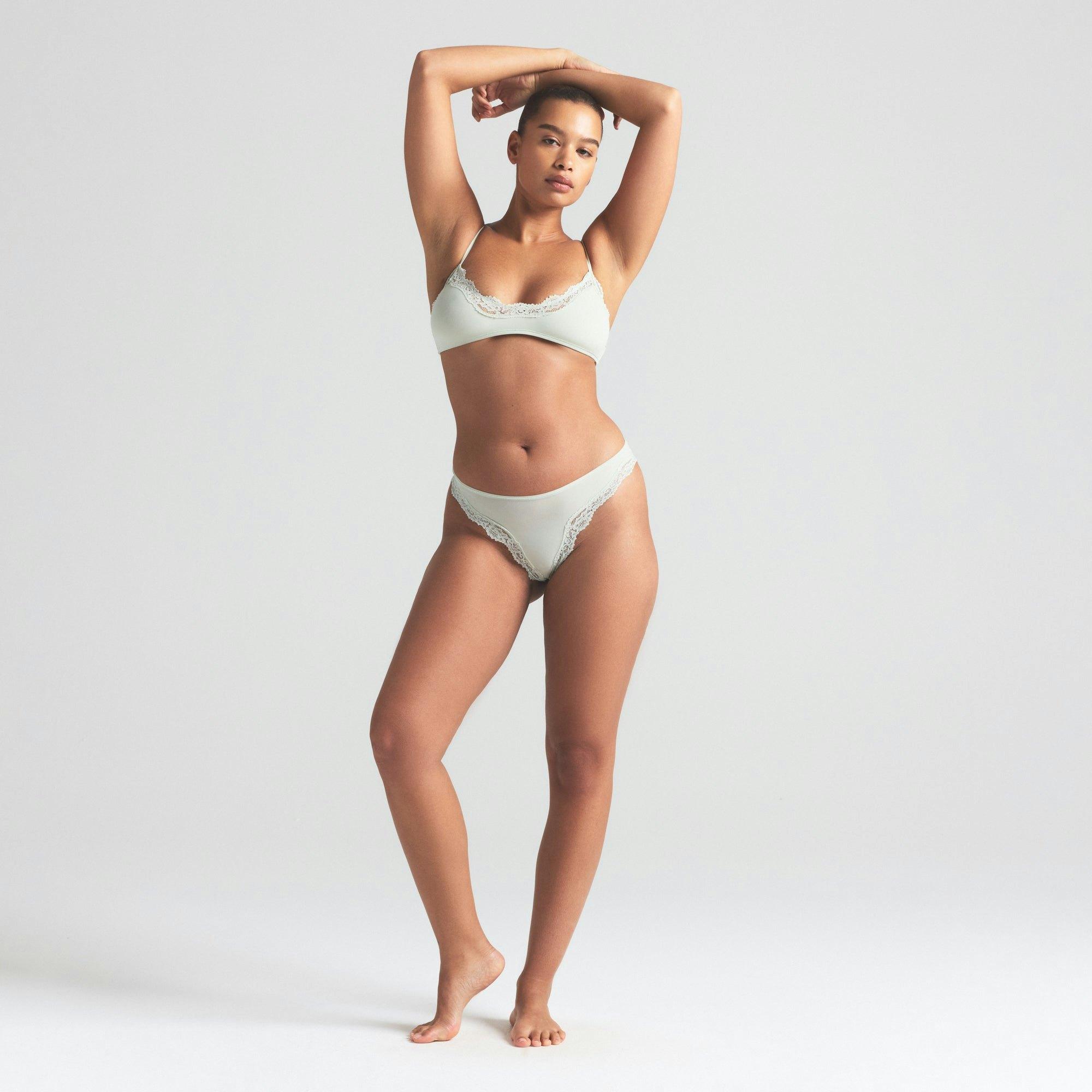 A cheeky, mid-rise tanga with ultra-luxe stretchy lace details. Features a 100% cotton gusset. Fits true to size.