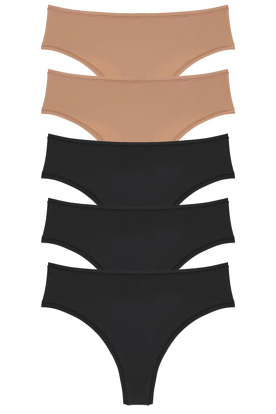 76% polyamide, 24% elastane. Machine wash. Jersey fabric with thong back. Pack of 5. This item is not available for international export. Made in Vietnam. Revolve Style No. SIMX-WI73. Manufacturer Style No. TH-THG-9657W.