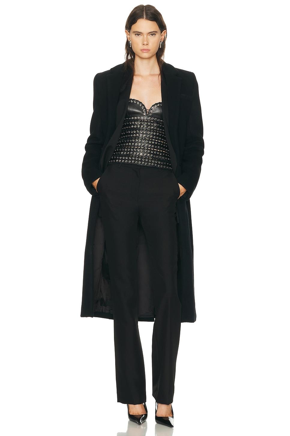 coatSelf: 100% woolLining: 100% bemberg / Made in France / Dry clean only / Button down closure / Side panel pockets / Internal pockets / Shoulder pads / Buttoned cuff / Our Style No. LUDE-WO6 / Manufacturer Style No. AW25-CT015-W-WV0006 / Model is wearing size 36.