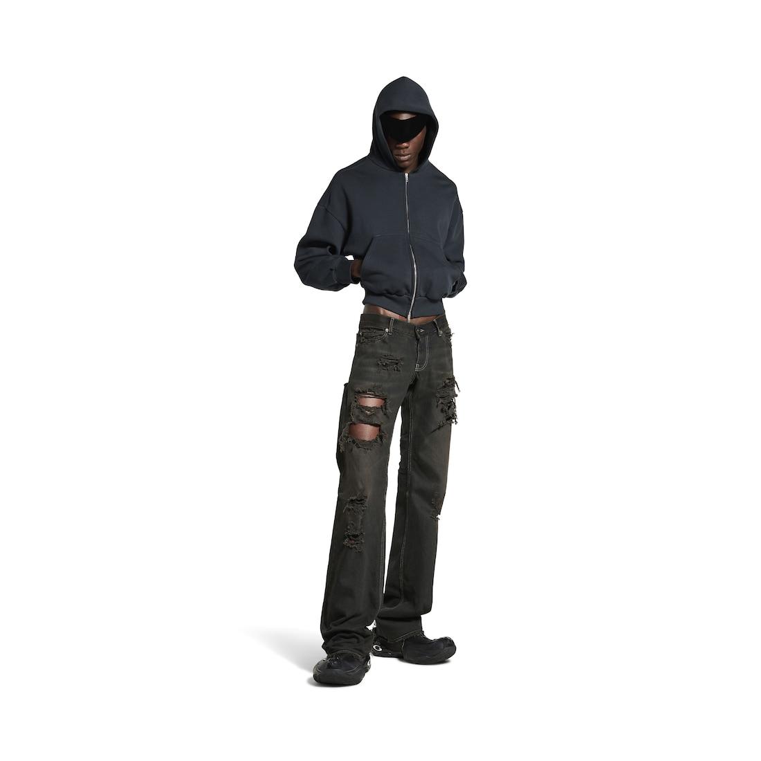 Fitted Low-Waist Pants in dark anthracite cotton denim
