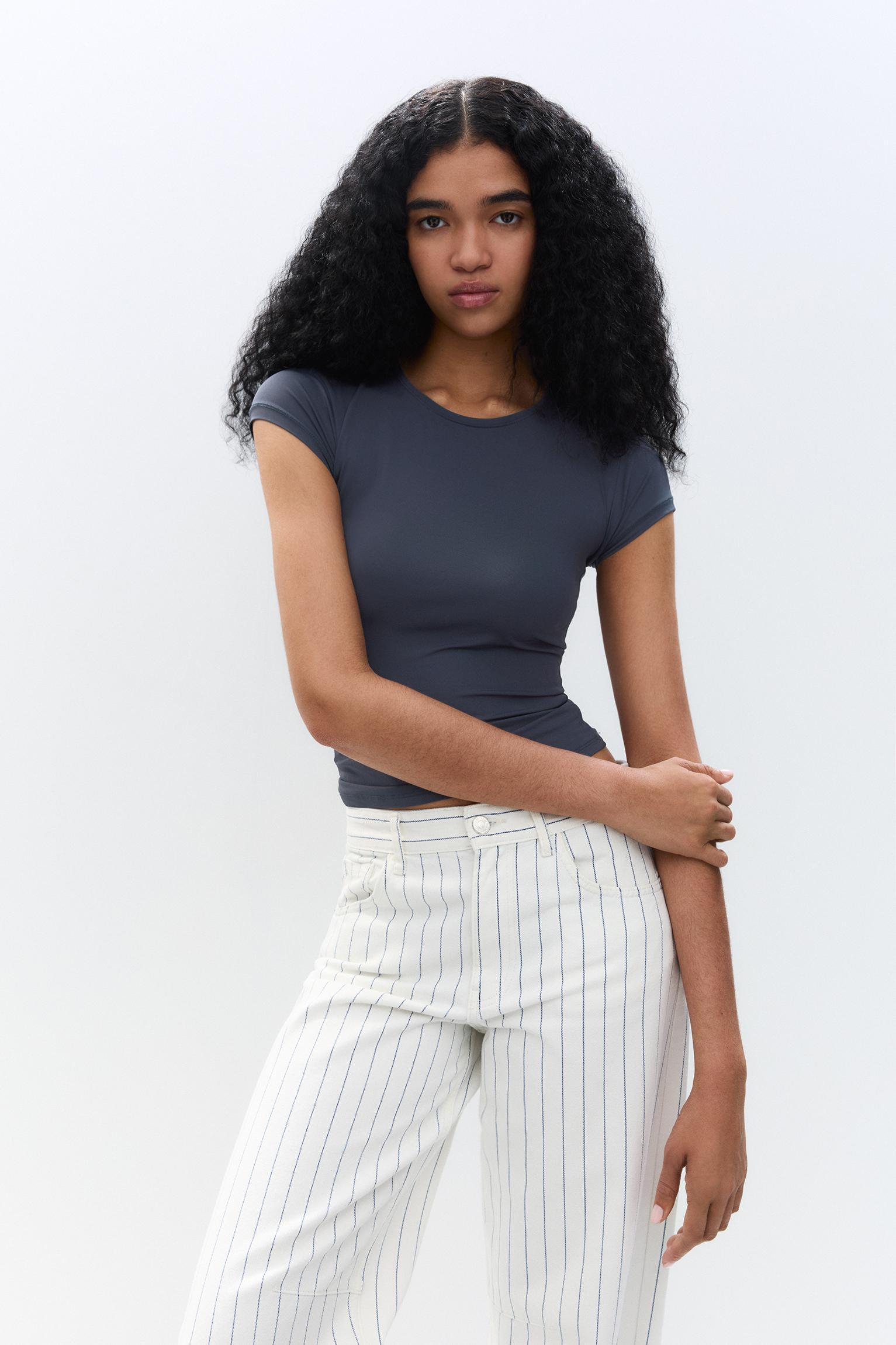 Fitted short sleeve T-shirt with a crew neck. Made of polyamide fabric.