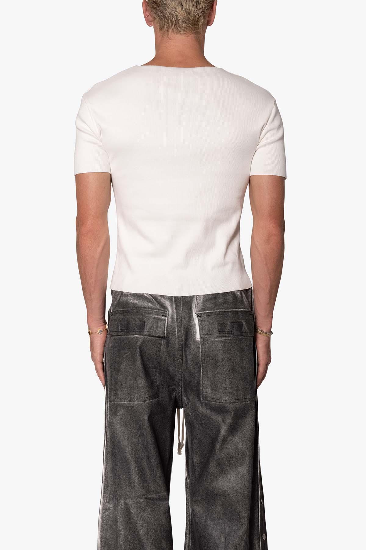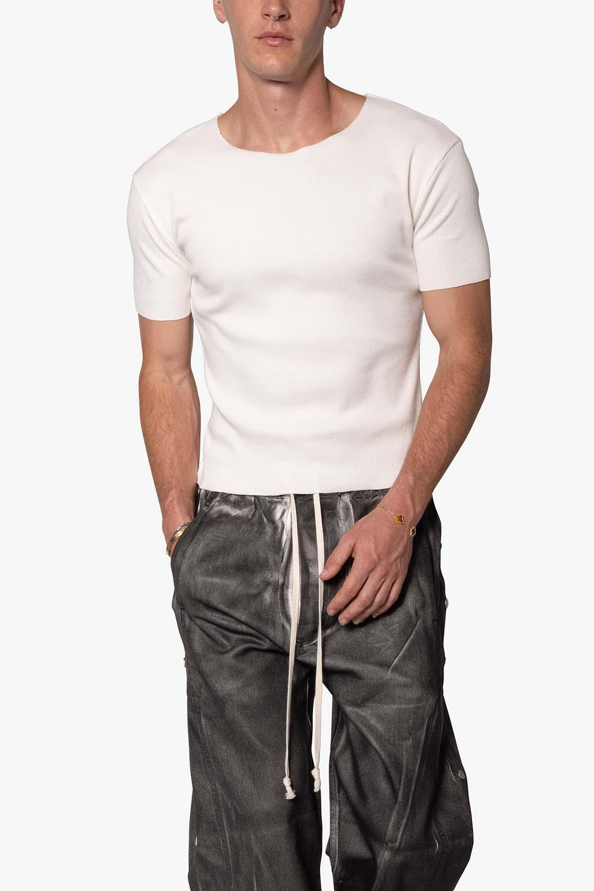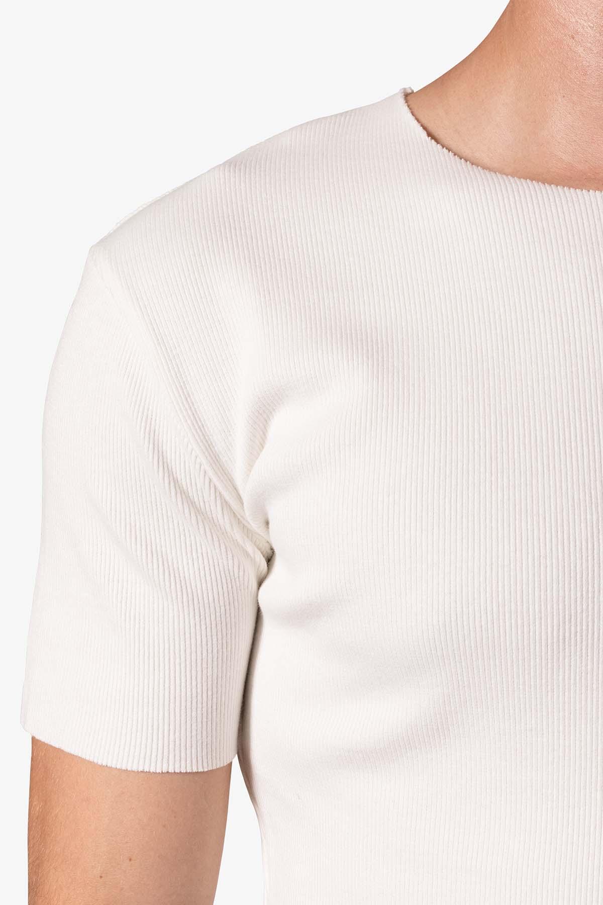 the Fitted Rib Tee is a 100% cotton tee is perfect as a base layer or worn alone. the tee features taping at the wide neck, a flat hem, and is constructed in a ribbed material details flat hem 100% ribbed cotton fabric Model is 6’0, 140 lbs and wears a size medium