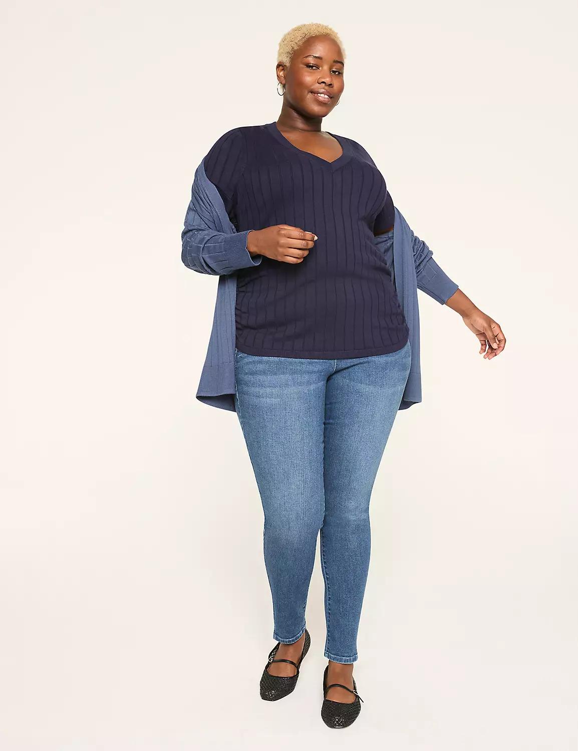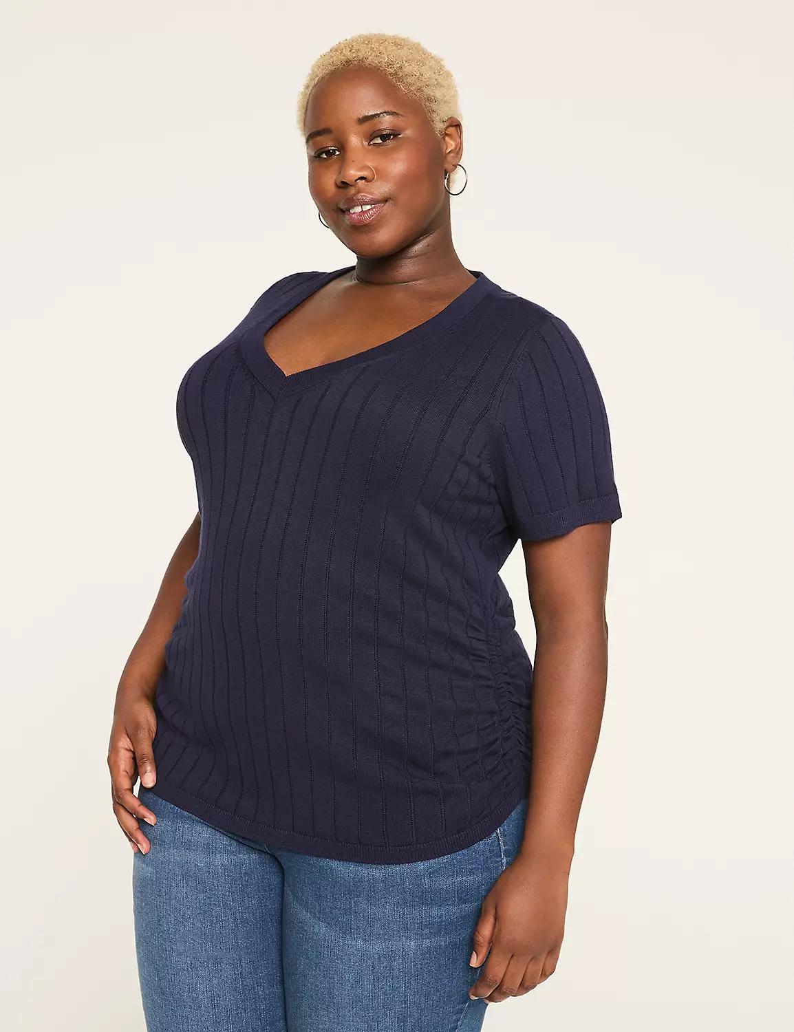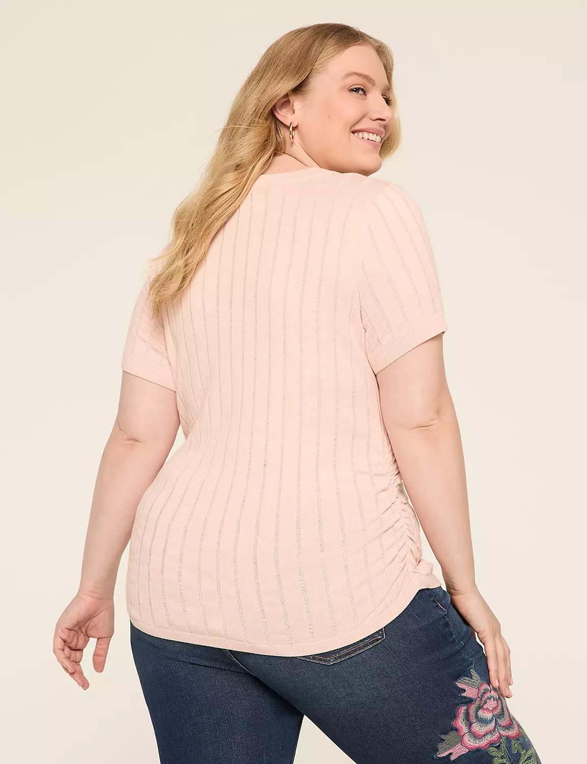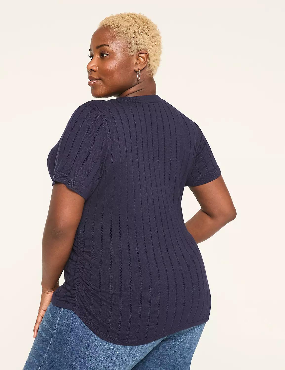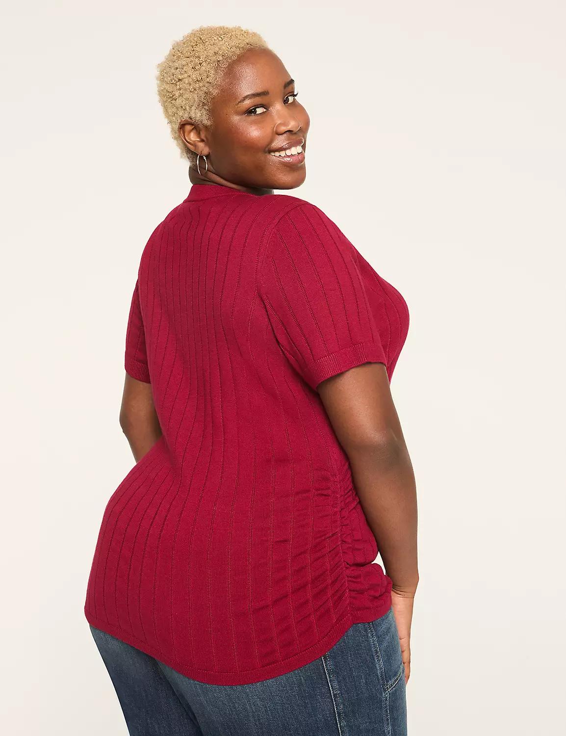 Fitted Short-Sleeve Side-Ruched Sweater