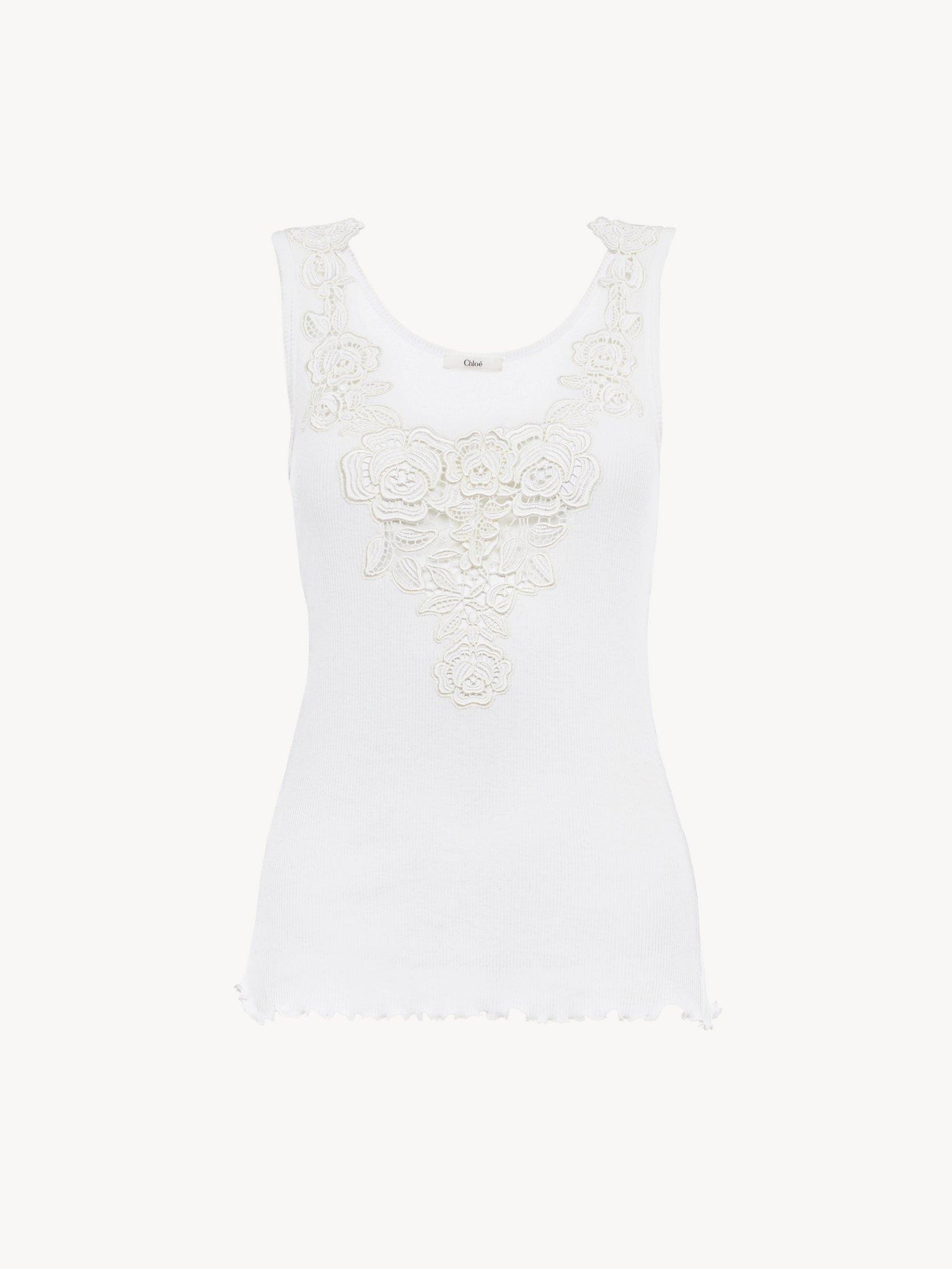 Fitted tank top in cotton jersey & guipure
