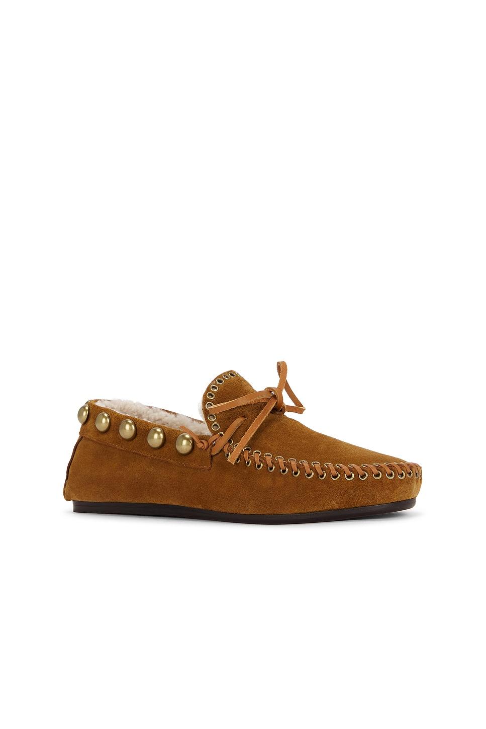 Cowhide upper with leather trim and leather sole. Fur Origin: Australia. Slip-on styling with front tie closure with tasseled ends. Dyed shearling lining. Fringed detailing. Tonal leather whipstitch trim at toe. Gold-tone studs. This item is not available for international export. This product contains animal fur and may be subject to shipping restrictions based on your address at checkout. Made in Portugal. Revolve Style No. IMAR-WZ381. Manufacturer Style No. 25AMC0028FA-C3A29S.