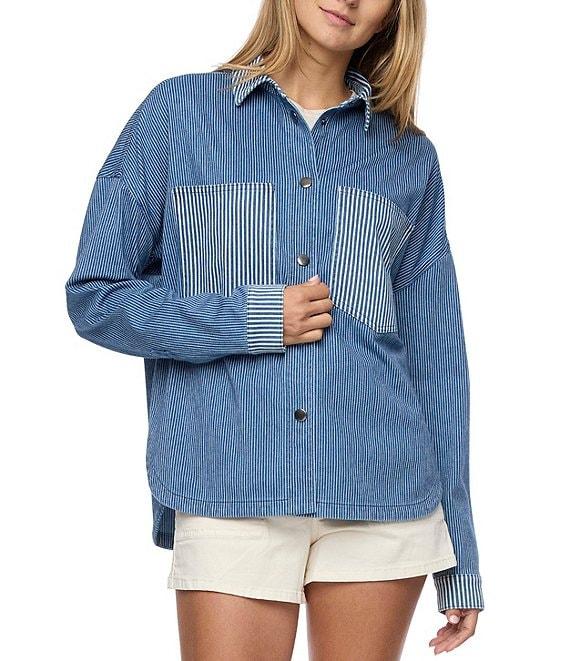 From Flag and Anthem, this shirt jacket features: Vintage design that’s inspired by classic workwear Lightweight knit fabric with the perfect amount of stretch for all-day comfort and maximum mobility Collared neckline Long sleeves with snapped cuffs Snap-front closure Two front patch pockets Dropped shoulders Rounded hem Cotton/nylon/spandex knit Machine wash/tumble dry Imported.