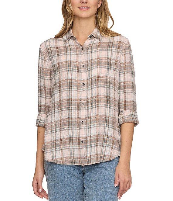 From Flag and Anthem, this shirt features: Plaid pattern Collar Long sleeves with buttoned cuffs Button-front closure Slightly curved, high-low hem Oversized fit Comfortable and easy to wear Light and airy woven fabric of viscose/polyester/spandex Machine wash/tumble dry Imported.