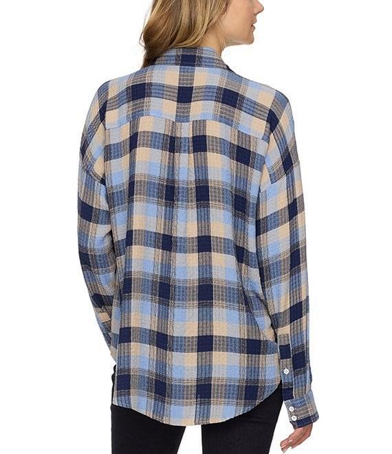 From Flag and Anthem, this shirt features: Timeless plaid print Collared neckline Long sleeves with button cuffs Button front closure Single patch pocket Slightly curved, high-low hem Relaxed, oversized fit that's comfortable and easy to wear Viscose/polyester/spandex Machine wash/tumble dry Imported.