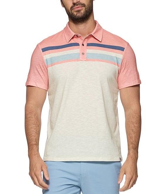 From Flag and Anthem, this polo shirt features: Cut in the perfect untucked length, it'll be key to your signature seasonal look Color block design Tailored athletic fit Polo collar Short sleeves 3-button placket Chest stripes Lightweight and breathable cotton/polyester Machine wash/tumble dry Imported.