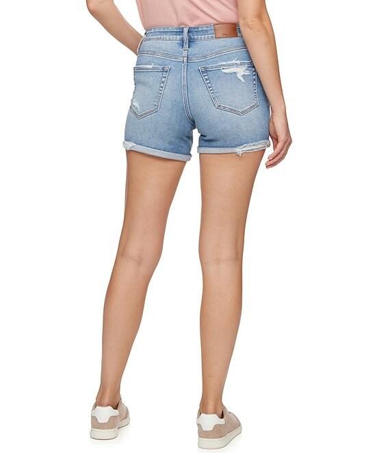 From Flag and Anthem, these shorts feature: Mid rise Front button/zip 5-pocket styling Distressed detail Cuffed Holds shape with movement and wear Infused with the perfect amount of stretch Insanely soft and lightweight cotton blend 4.5" inseam Cotton/polyester/spandex denim Machine wash/tumble dry Imported.